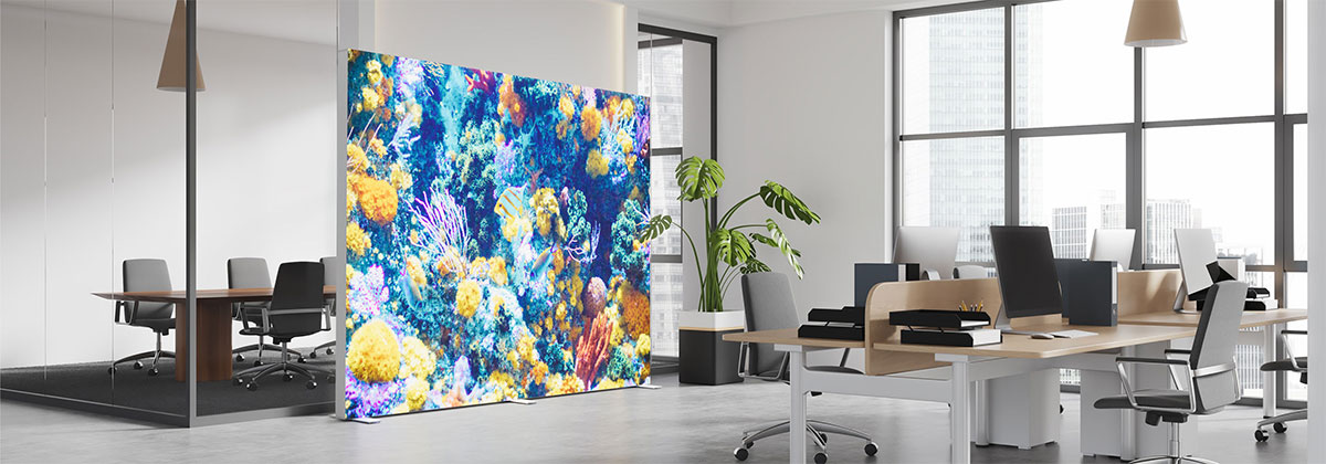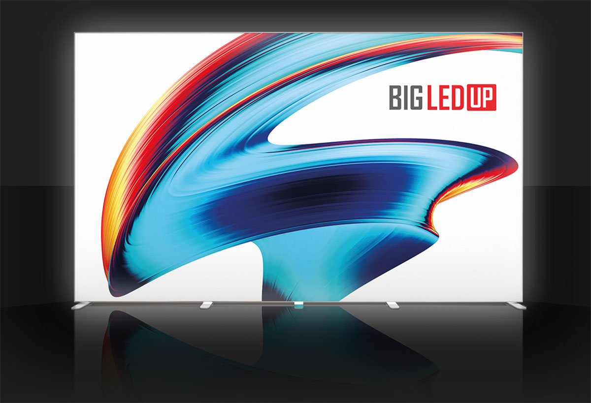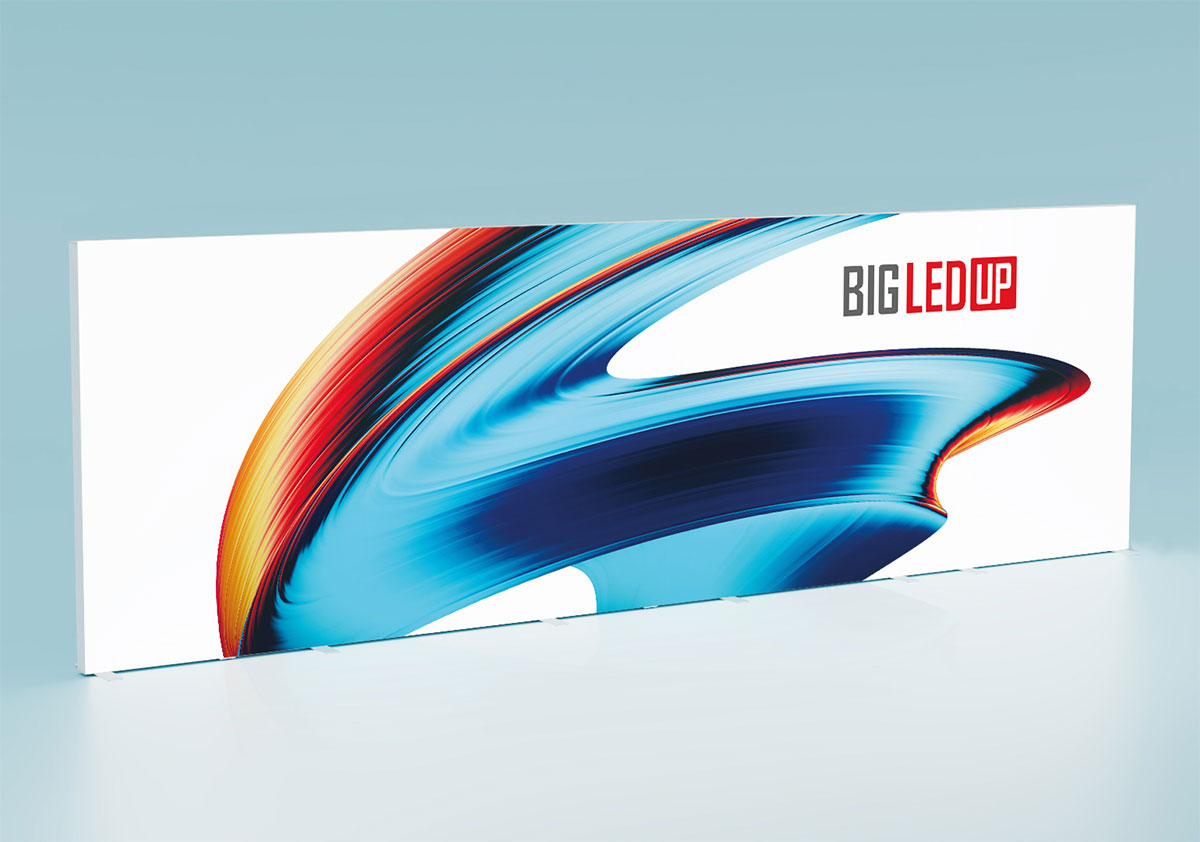 Create the perfect display with BIG LEDUP™’s modular design. Start with a 200 cm base module and expand with 50, 75, or 100 cm add-ons to reach a total width of 5 metres. Adjustable heights of 200, 250, or 300 cm add even more versatility. Combine multiple systems into expansive walls or creative shapes, and attach vibrant digital prints effortlessly for a flawless look. BIG LEDUP™ adapts to your needs, ensuring your brand stands out in any environment.