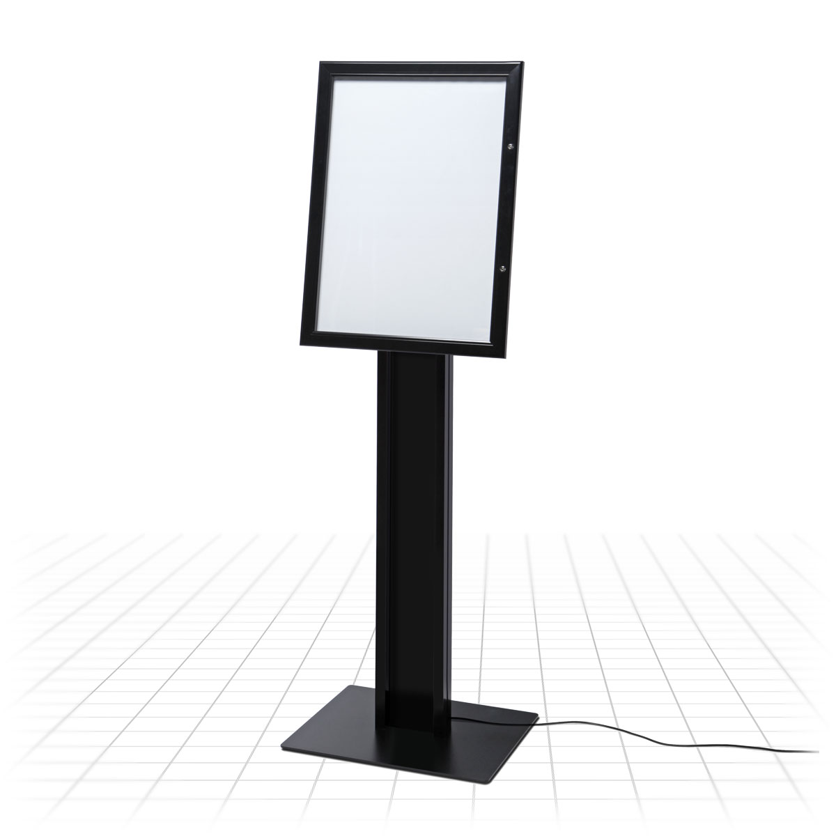 Display your menu or price lists with this premium quality menu board. The black frame is lockable and with a hinge to make poster fitting and exchange nice and easy.