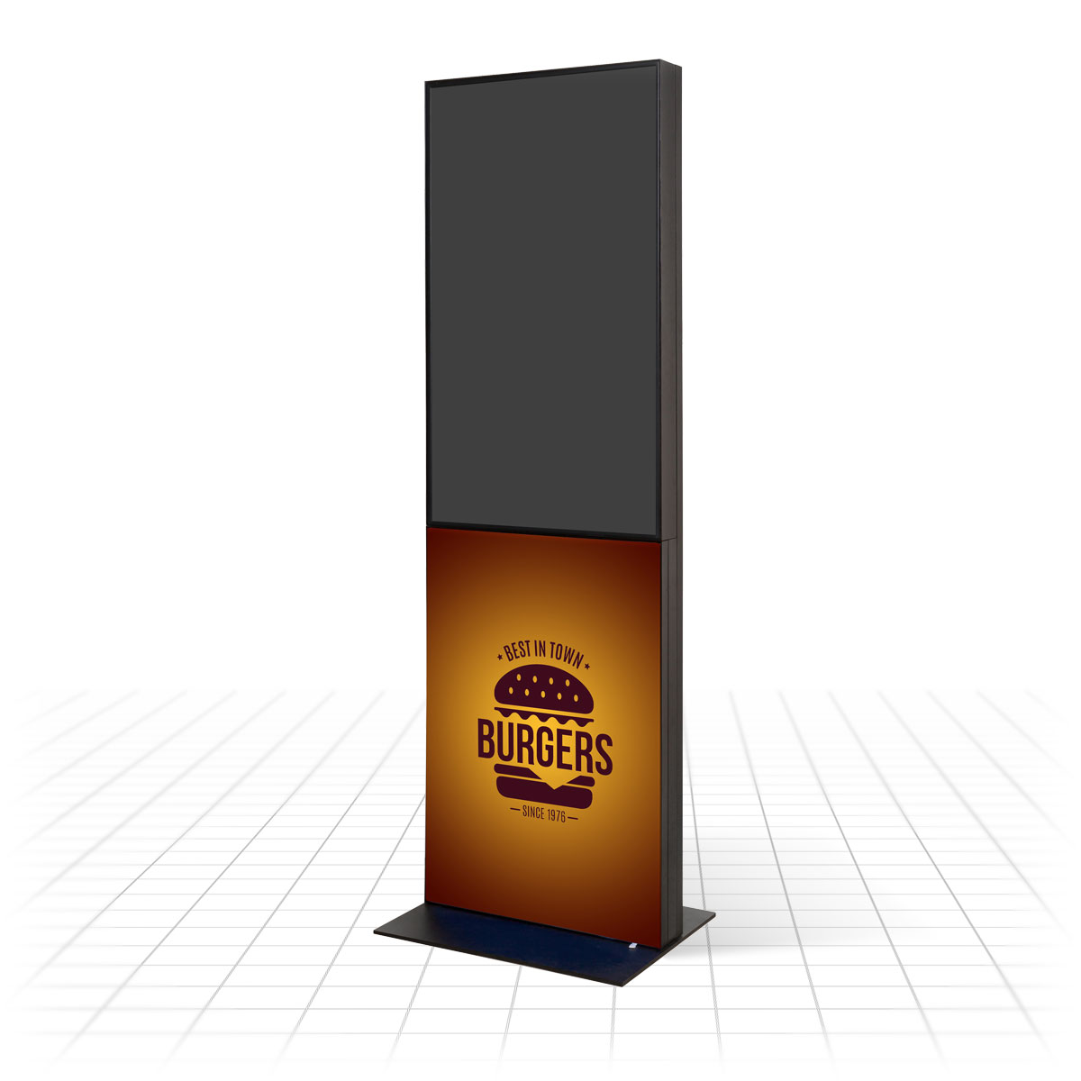 Unleash your creative potential with our cutting-edge Digital Fabric Totem. Tailor your message to perfection by showcasing videos on the screen and embellishing the front with a striking tension fabric print that proudly displays your logo or company branding. With the added bonus of a full graphic display on the back, you can revamp your totem for any occasion. Swap messages effortlessly – whether it’s a seasonal twist or a promotional boost, our SEG fabric graphic option lets you switch things up at will.