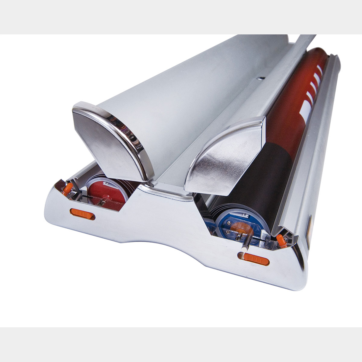 Roller banner with silver anodised finish