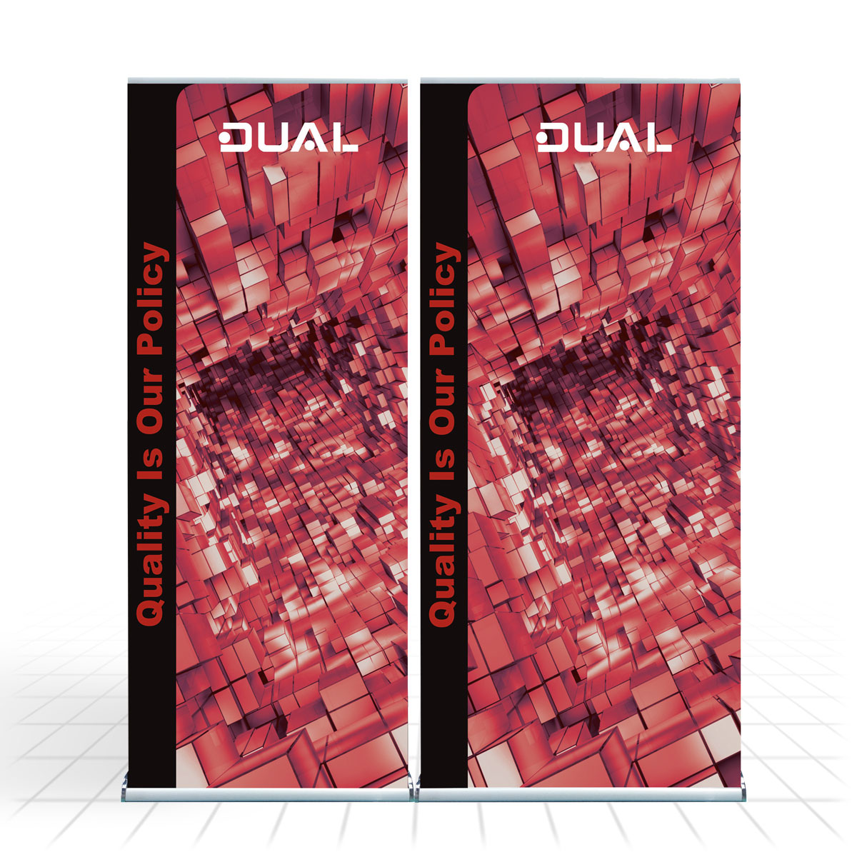 The Dual display stand has been designed to maximum effect so as to hold two graphic panels, but still remaining easy to set up and transport. Dual’s sleek base has stylish end caps to add to the high quality design of this unit.