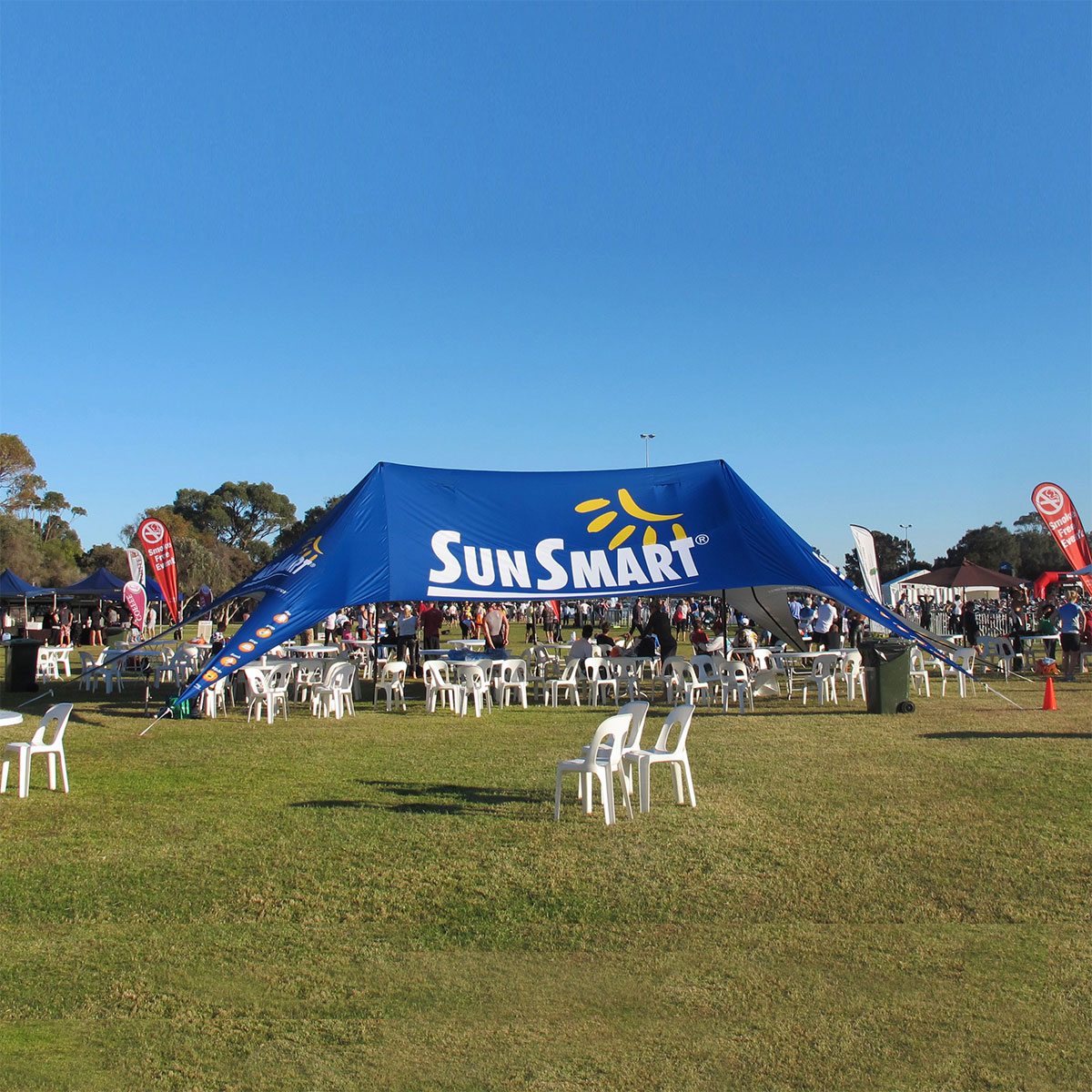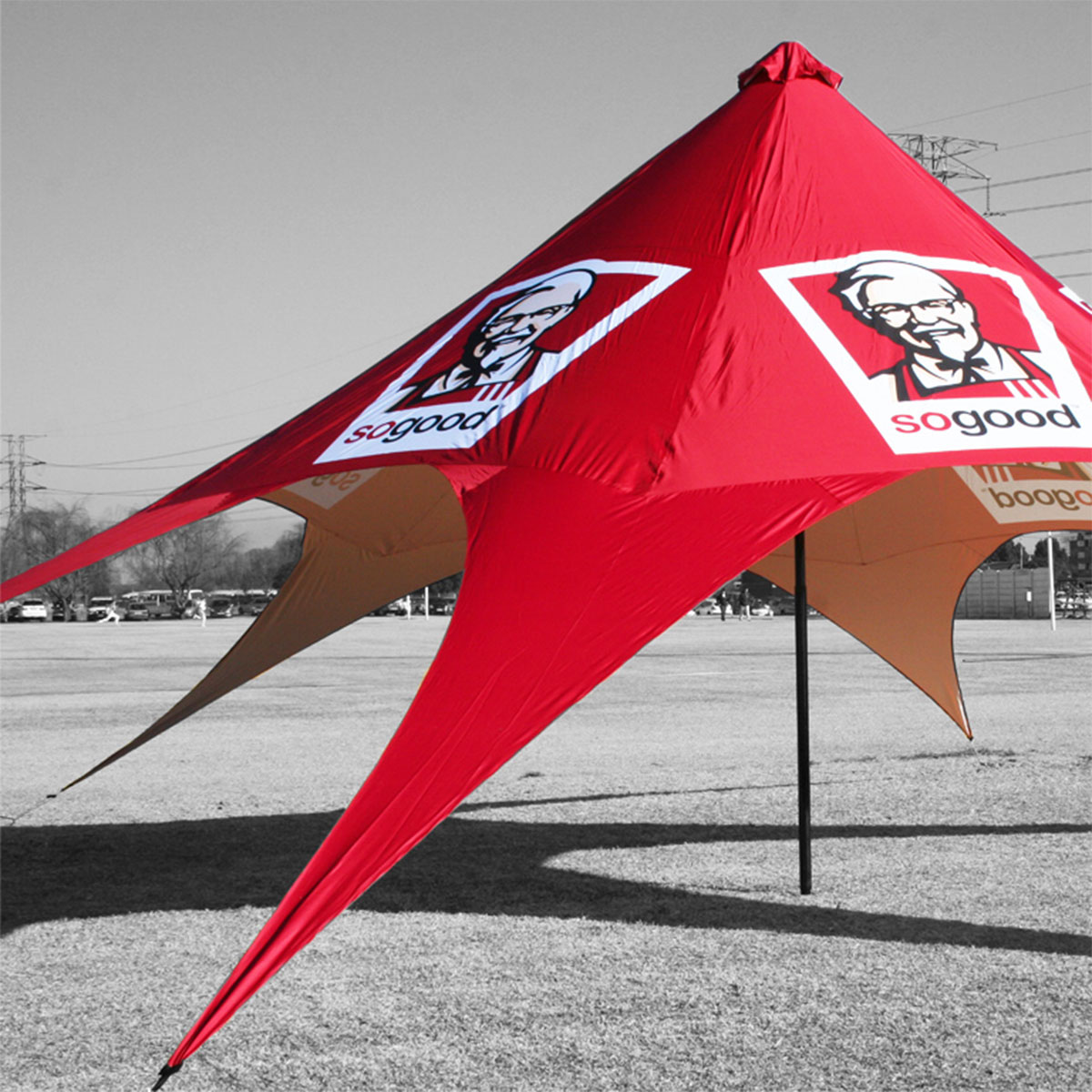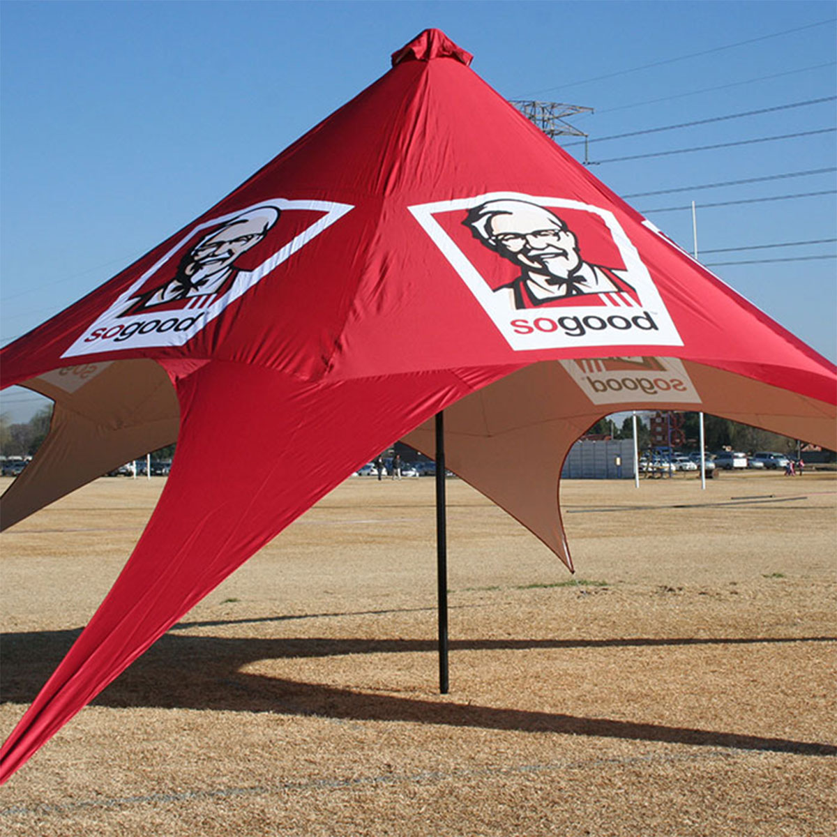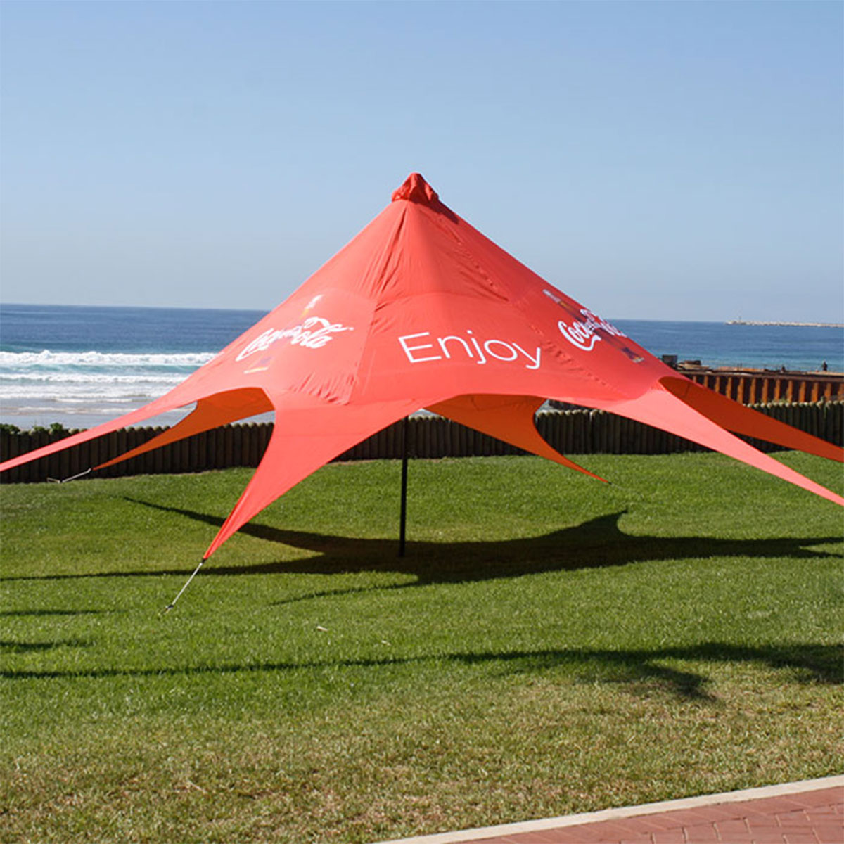 The Ex-Star provides both eye-catching branding and stylish shelter from the elements. These are ideal for promotions, festivals, sports events and golf days as well as being a great alternative to a standard Gazebo or Inflatable Tent.