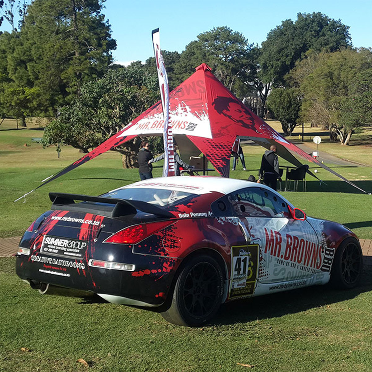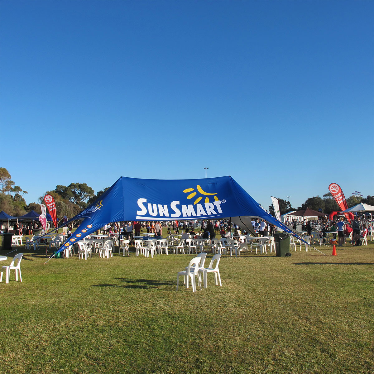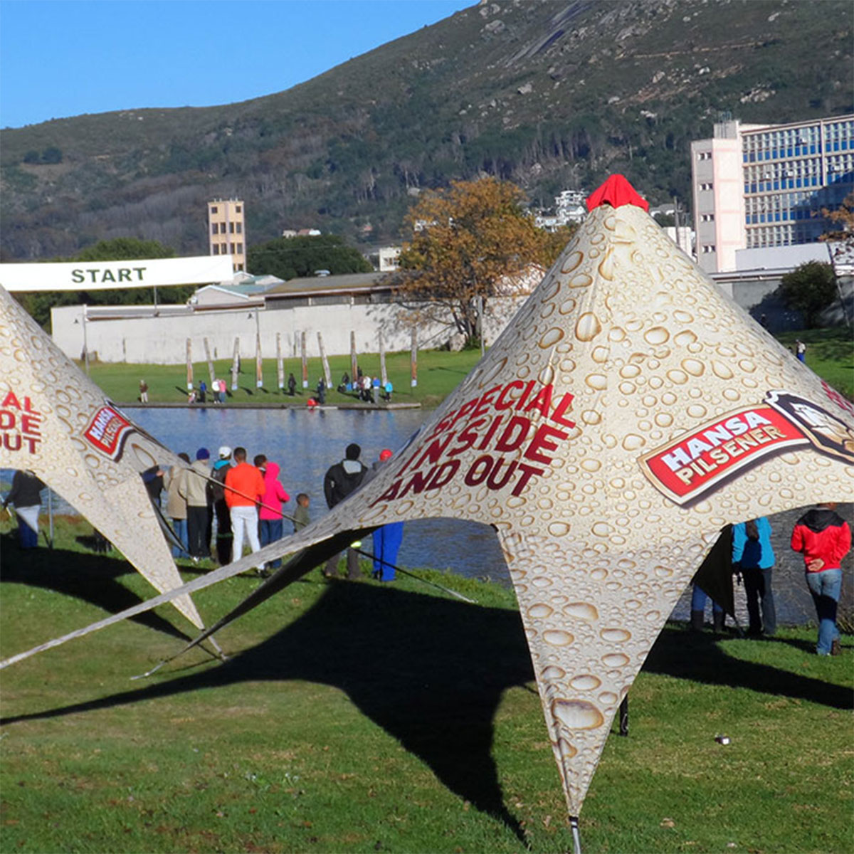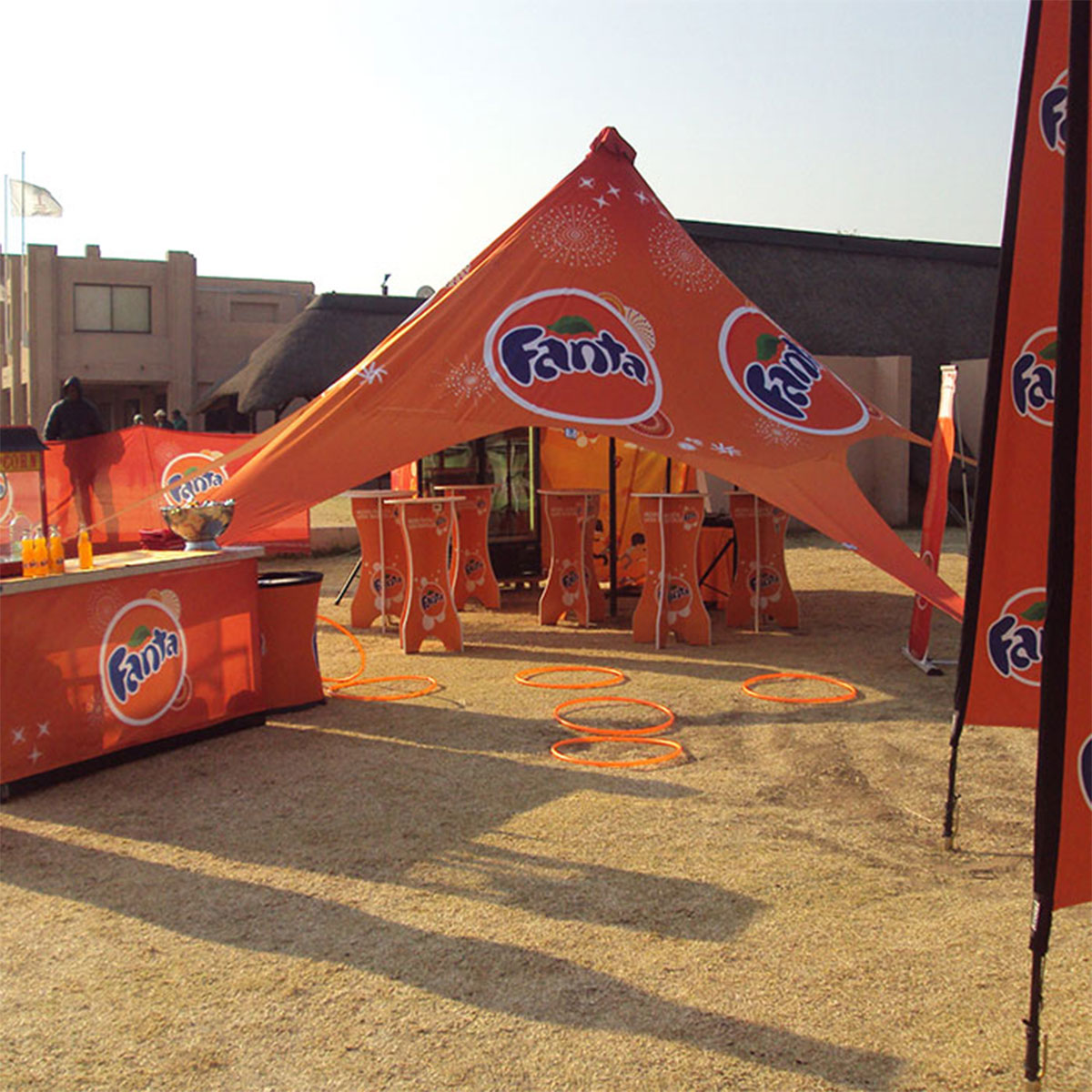 The Ex-Star provides both eye-catching branding and stylish shelter from the elements. These are ideal for promotions, festivals, sports events and golf days as well as being a great alternative to a standard Gazebo or Inflatable Tent.