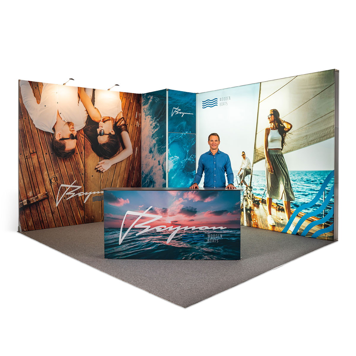 Whether you’re working with small spaces or building out a larger stand, Expo Light Frame adapts easily. With dozens of width options and compatibility with the Expo Classic Frame system, you can create tailored layouts that evolve with each event. Reconfigure, expand, and refresh your setup with ease.