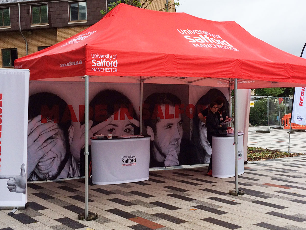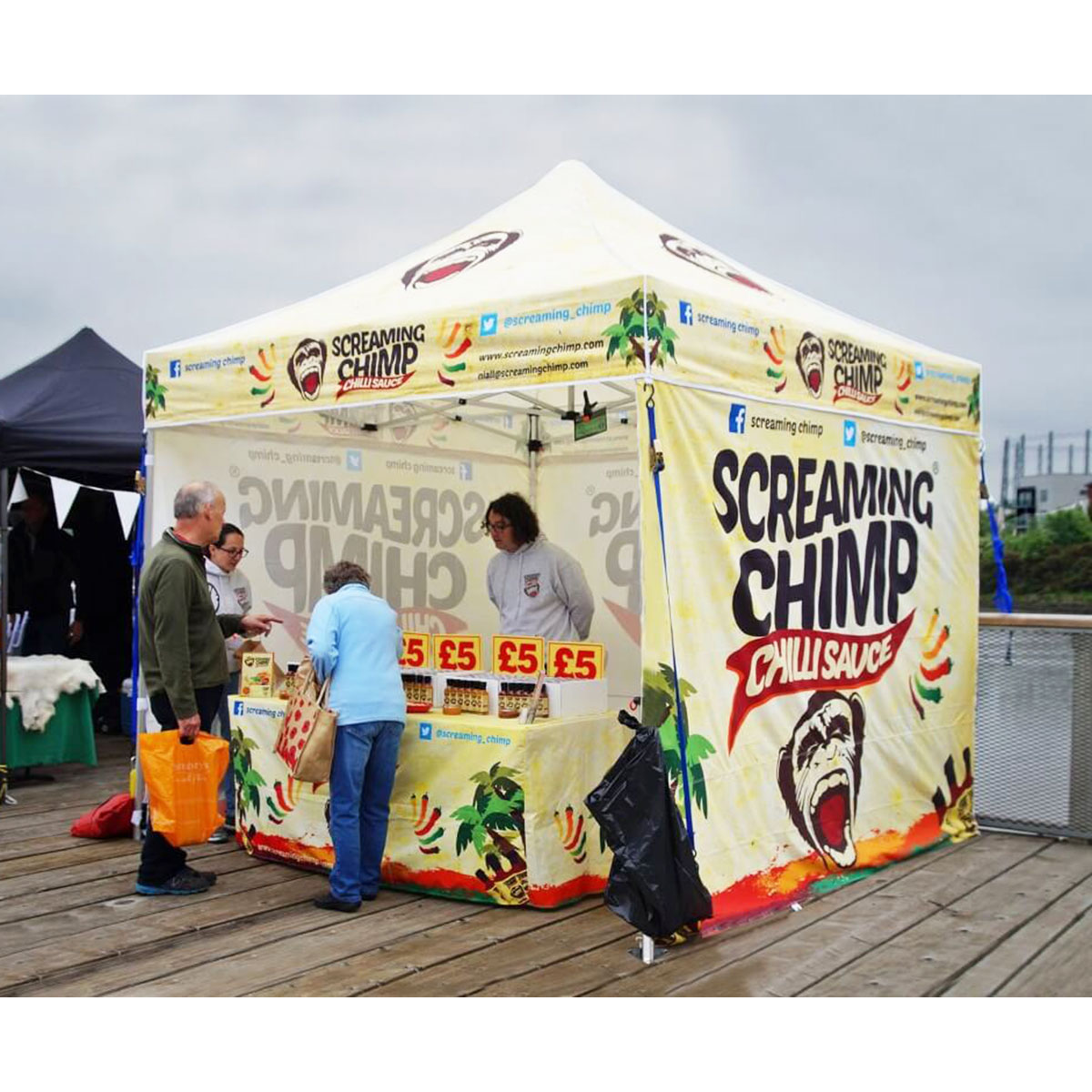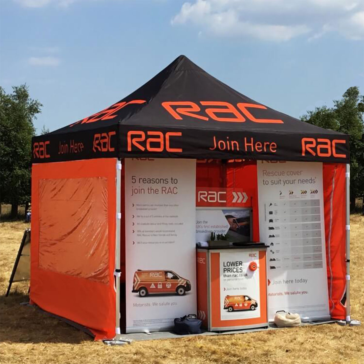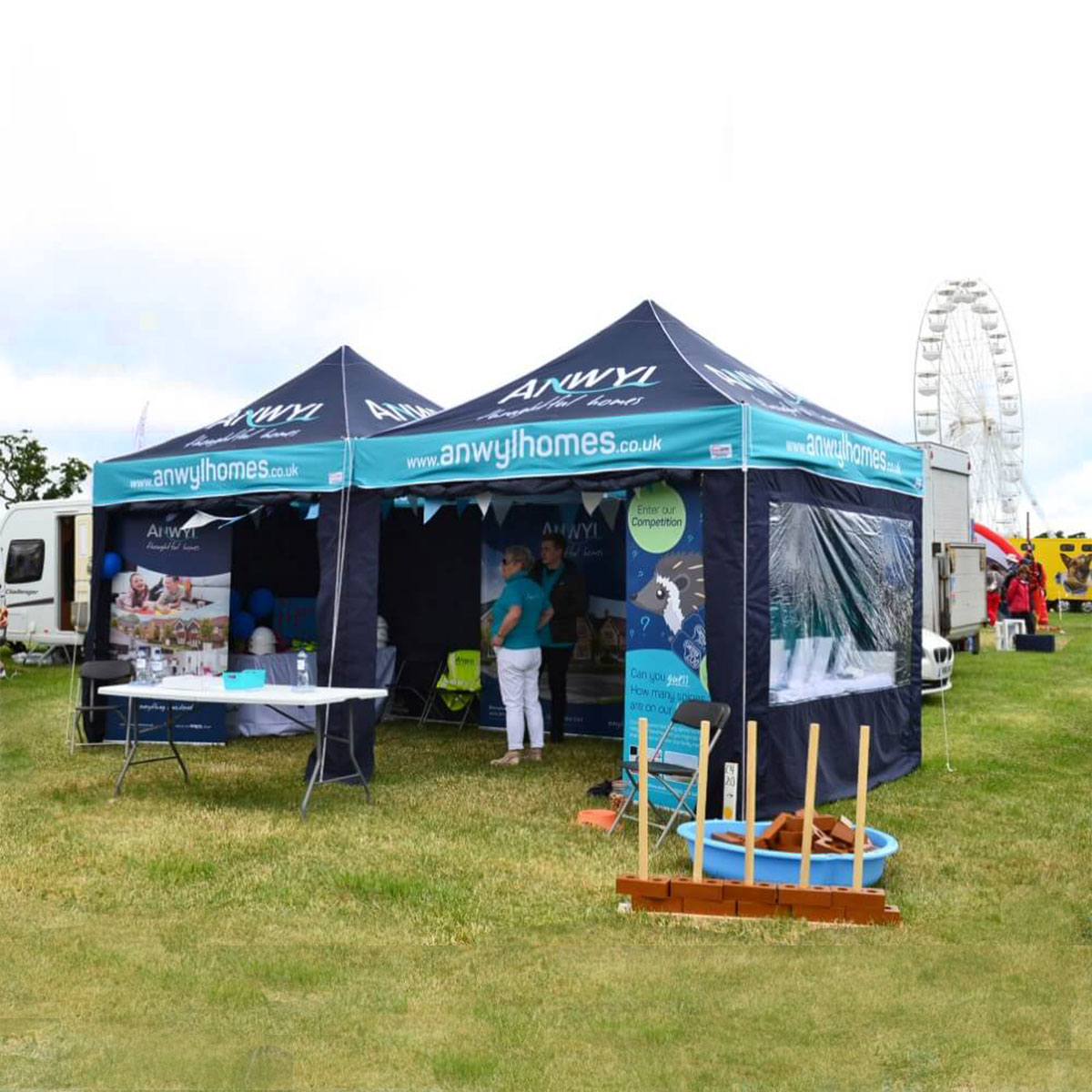 Our exhibition gazebos are dual purpose outdoor displays perfect for shelter from the elements at outdoor events, and also fully branded to promote your brand and products. Printed on UV protected, weather proof material, our gazebo displays are a great tool to grab attention throughout the year.