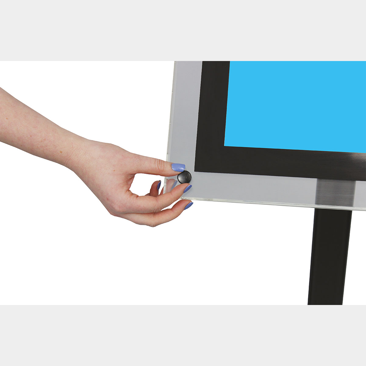 • Satin black powder coated pole and base with matching poster border
