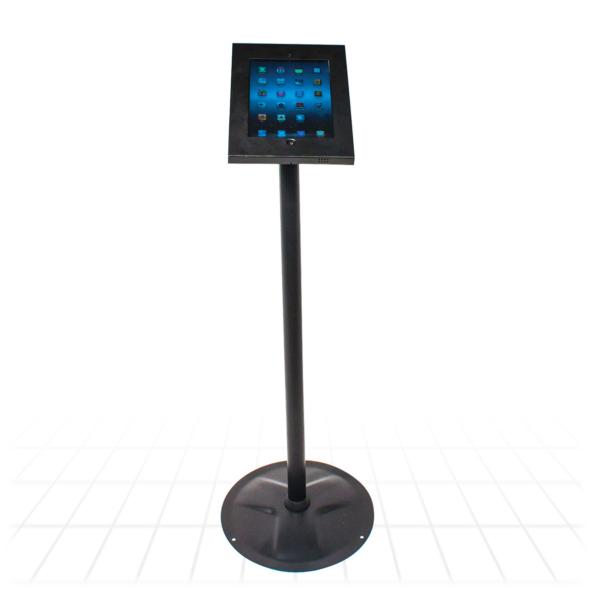 This iPad display stand is our cheapest floorstanding unit. This sleek and portable iPad display unit can be used with all iPad tablets excluding iPad 1. The iPad housing can be positioned portrait or landscape, and is made of steel.