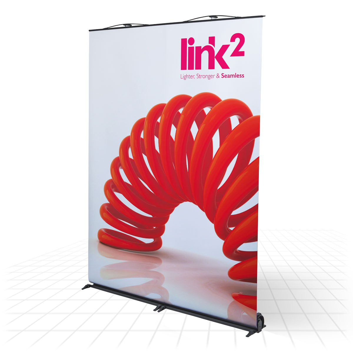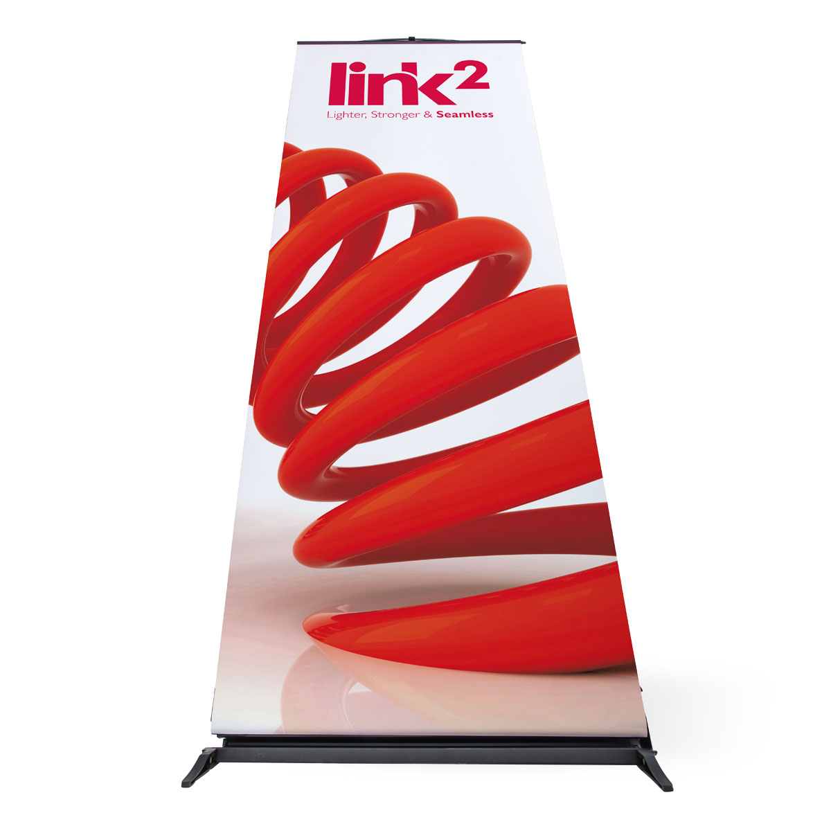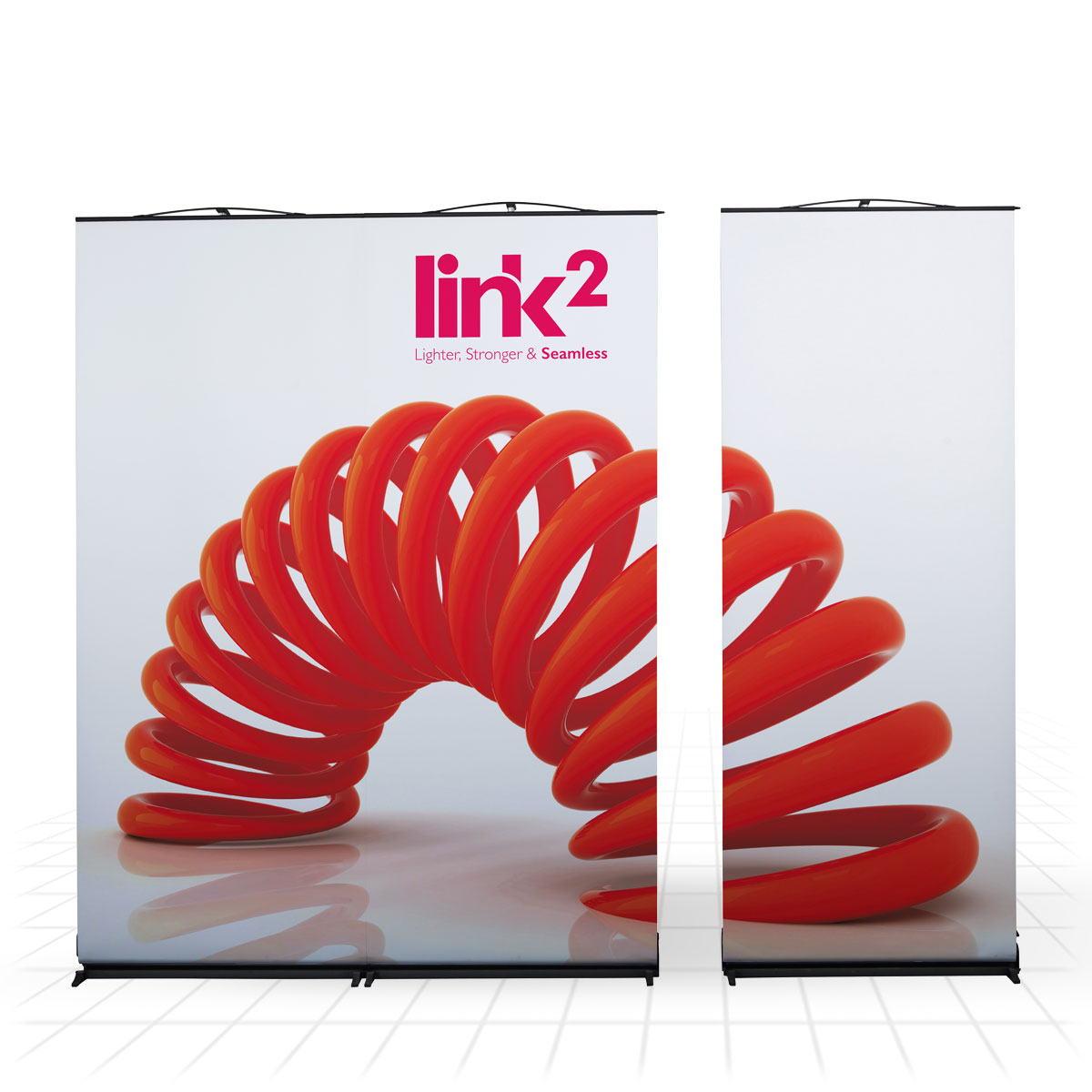 Link² is an exciting next generation of display stand, ideal for exhibitions and events. At last, a portable display stand where the user can easily change graphic panels on-site, and the ability to link stands together.