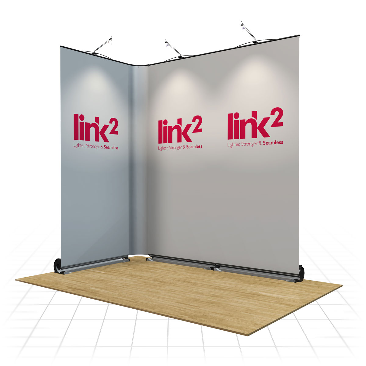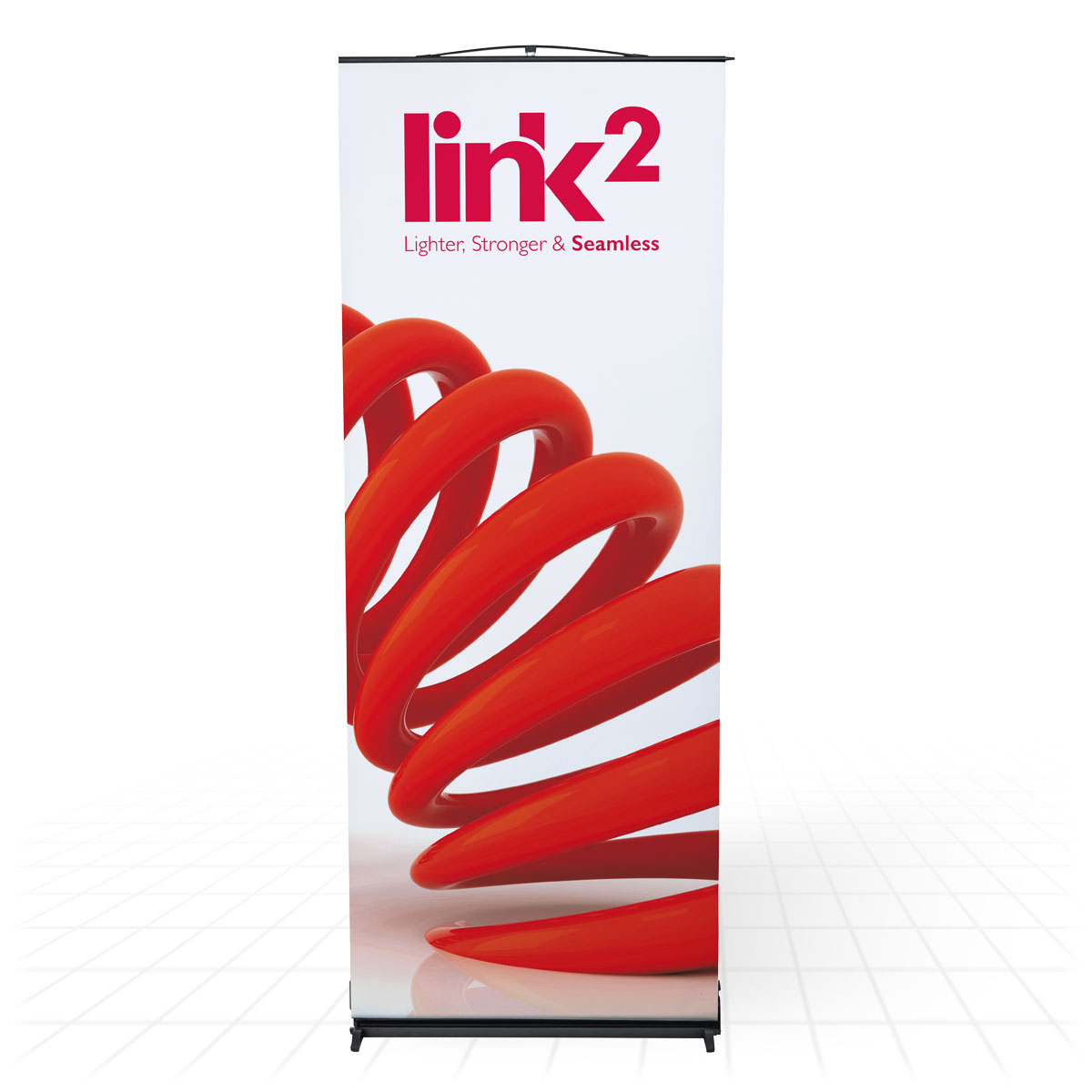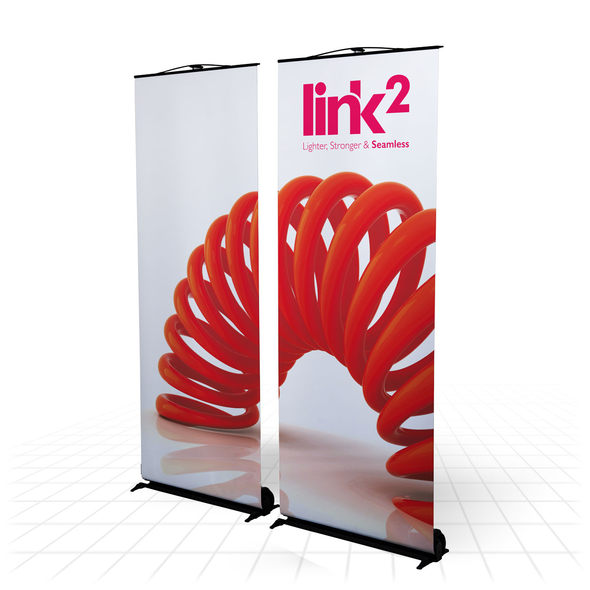 Link² is an exciting next generation of display stand, ideal for exhibitions and events. At last, a portable display stand where the user can easily change graphic panels on-site, and the ability to link stands together.