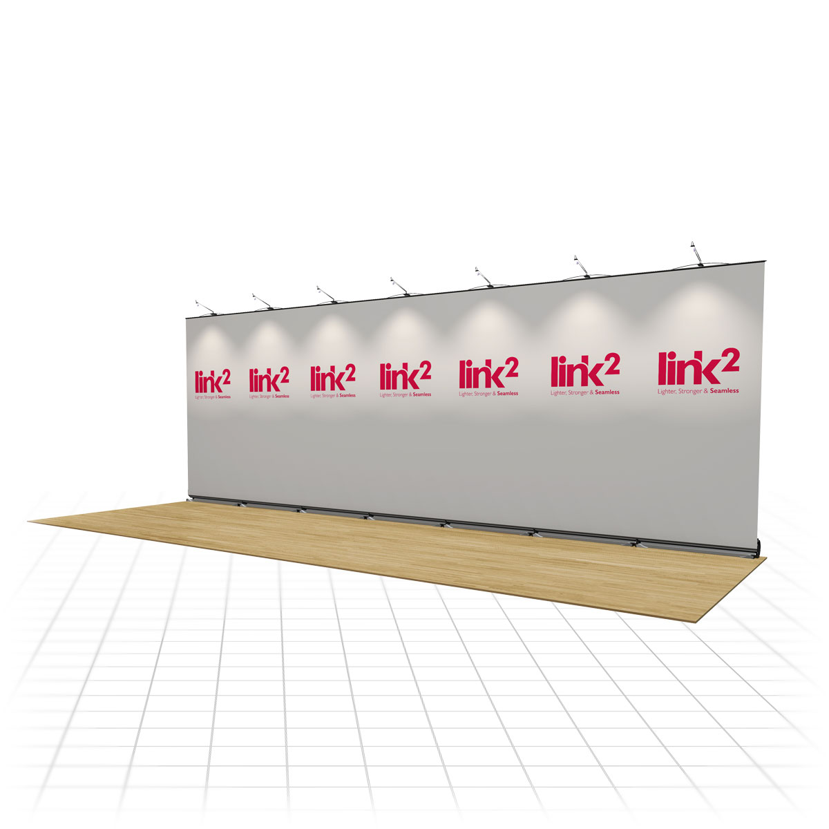 The Link² display stand base unit is only 20cm deep. This offers a sleek reusable alternative to purchasing graphic panels fitted directly to a shell scheme. Purchase multiple Link² banner stands and join them together to create one seamless display stand to brand your shell scheme area. These can then be reused for future events, rather than purchasing multiple sets of graphic panels to fit to varying sizes of shell scheme walls.