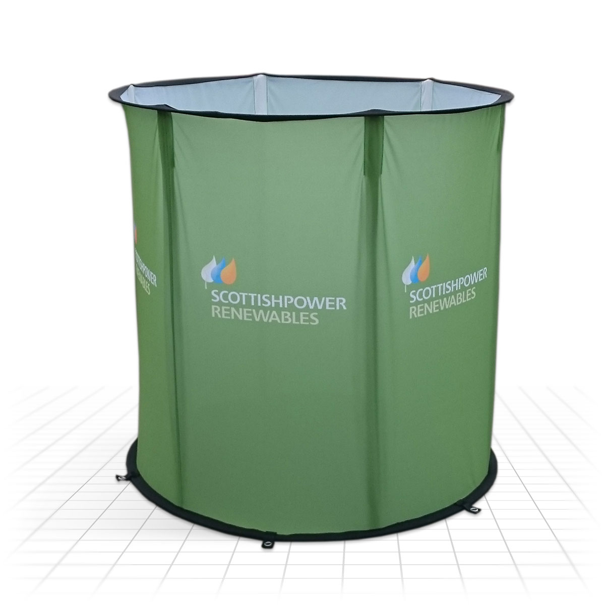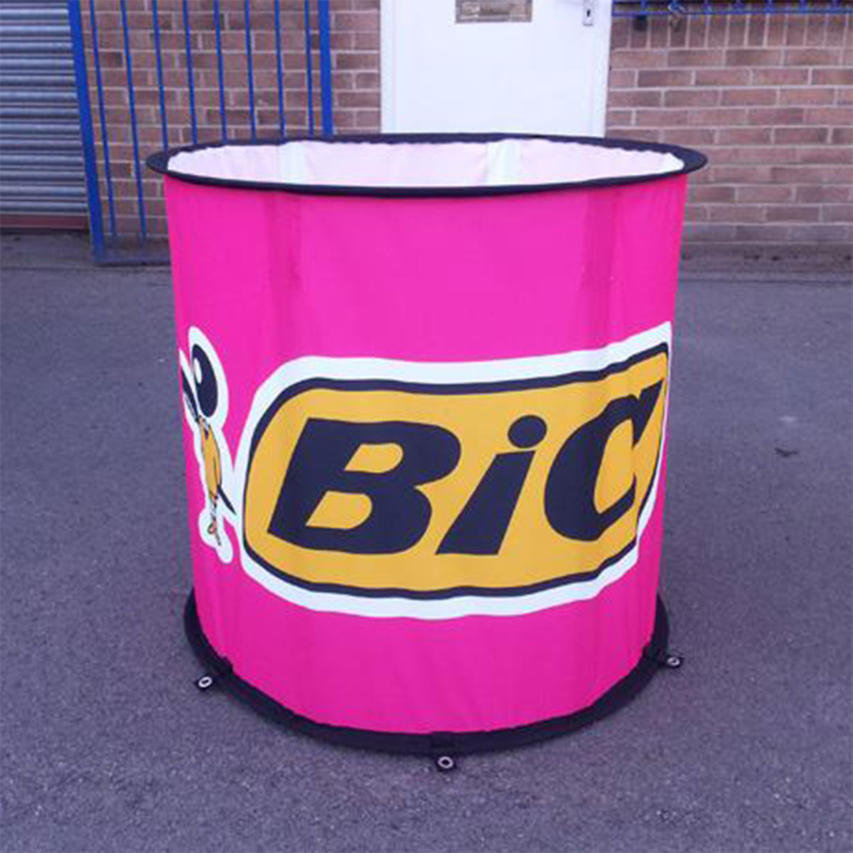Event Bin compliments our range of outdoor pop-up range. Printed onto high quality display fabric, with a waterproof bottom, and using the same high quality tensioning system across the range. Event Bin can be pegged or weighted down to perform in any weather.