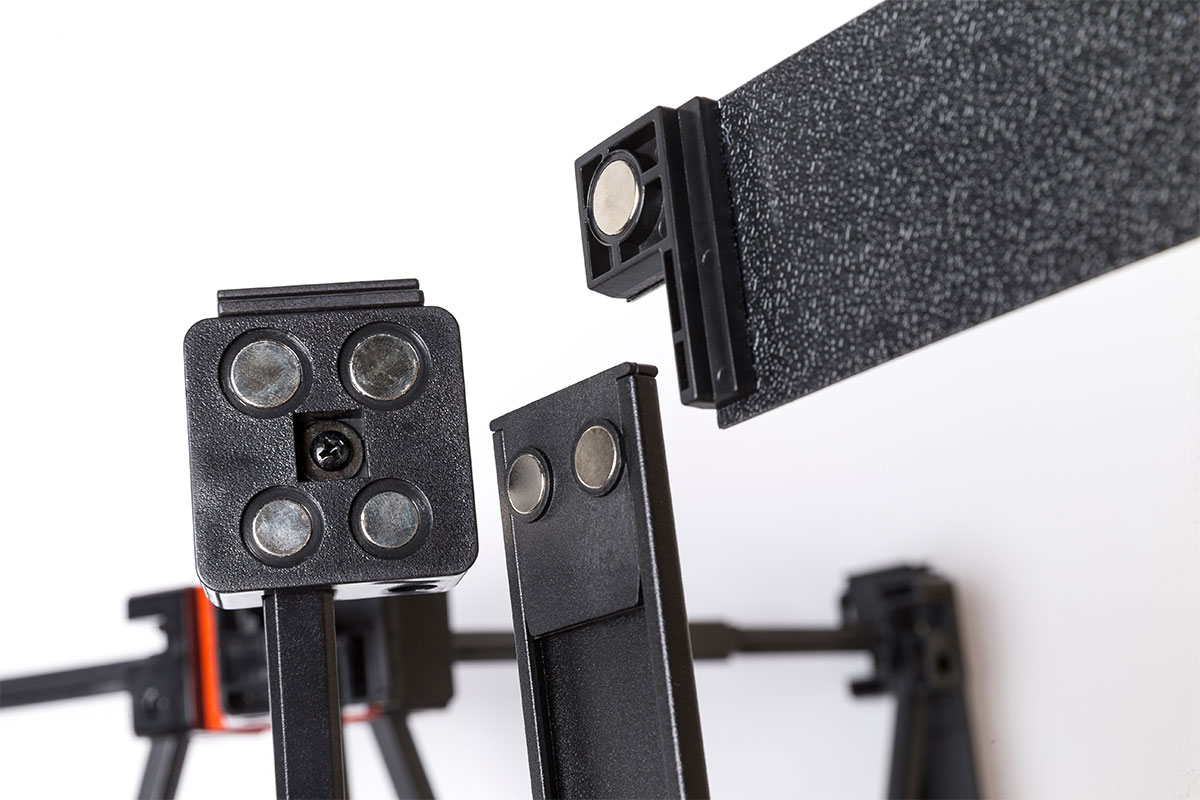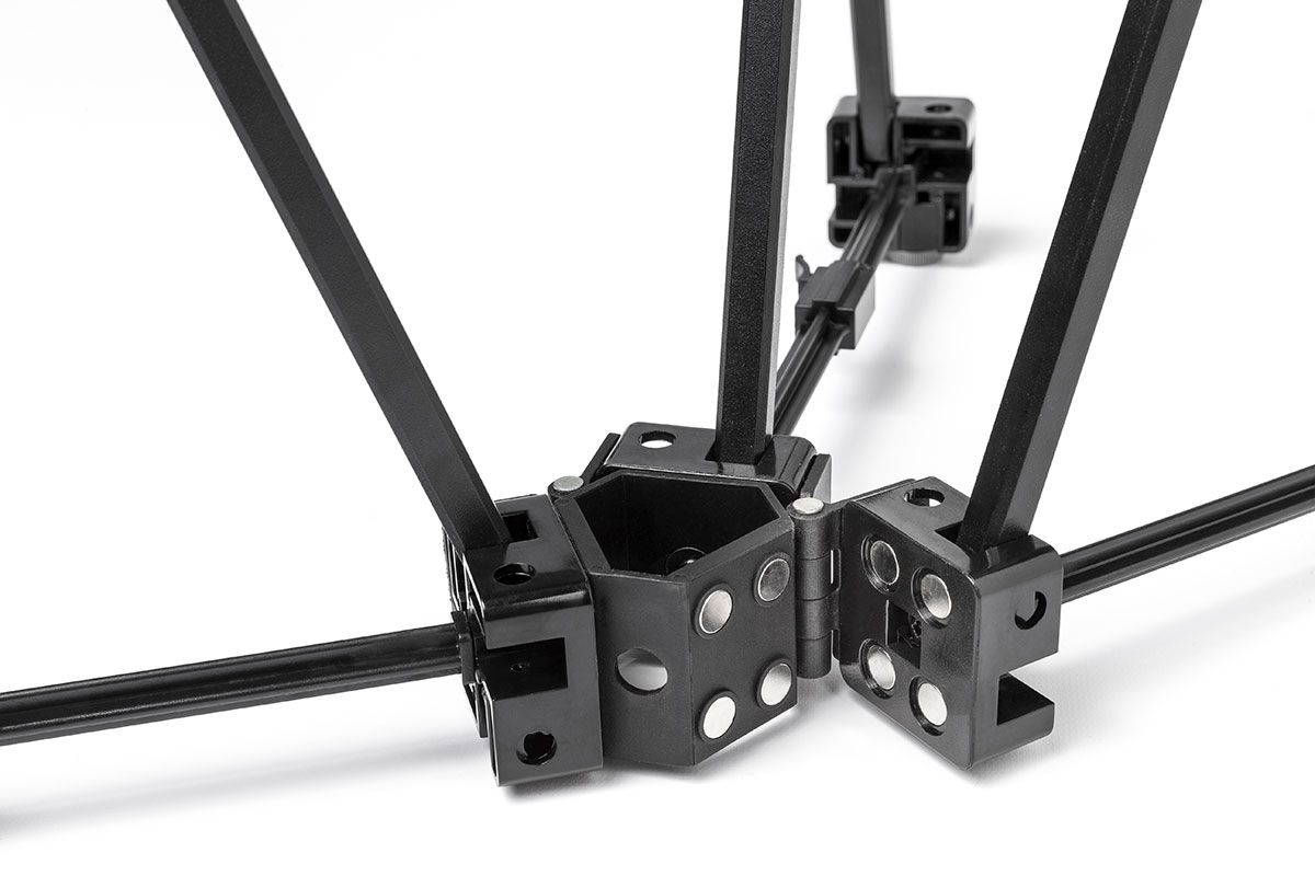 Pop Up Tower can be set up in minutes and packs down just as fast. Simply open the frame, lock them into place and magnetise your panels onto the frame. When you are finished, Pop Up Tower packs away in a few minutes. The Pop Up Tower framework is supplied with a lifetime guarantee.