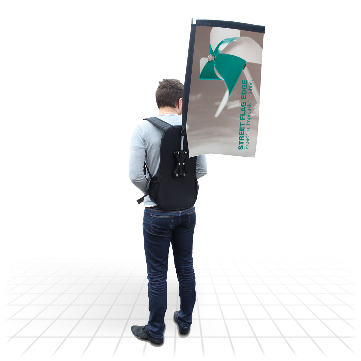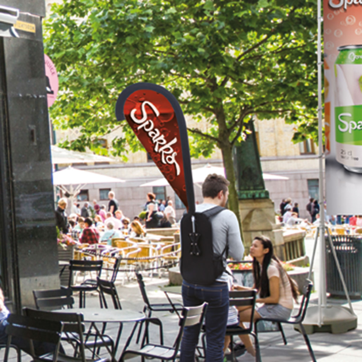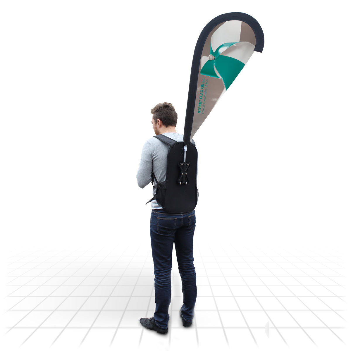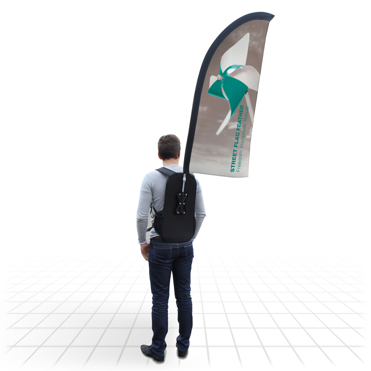 The Street Flag is the perfect solution to advertise on the move. Ideal for adding value when distributing flyers in the high street, promoting events or your stand location. It’s a great new way to get your message across at your next marketing event. The sturdy and lightweight backpack will accept four different flag shapes, which are easily attached using the poles supplied.