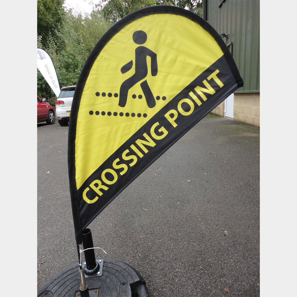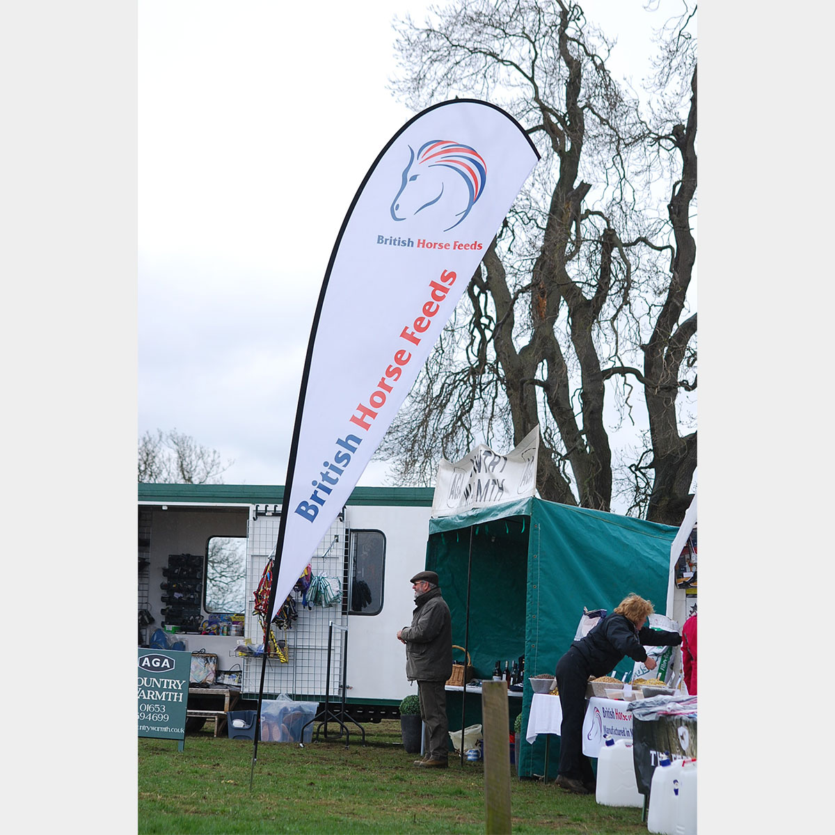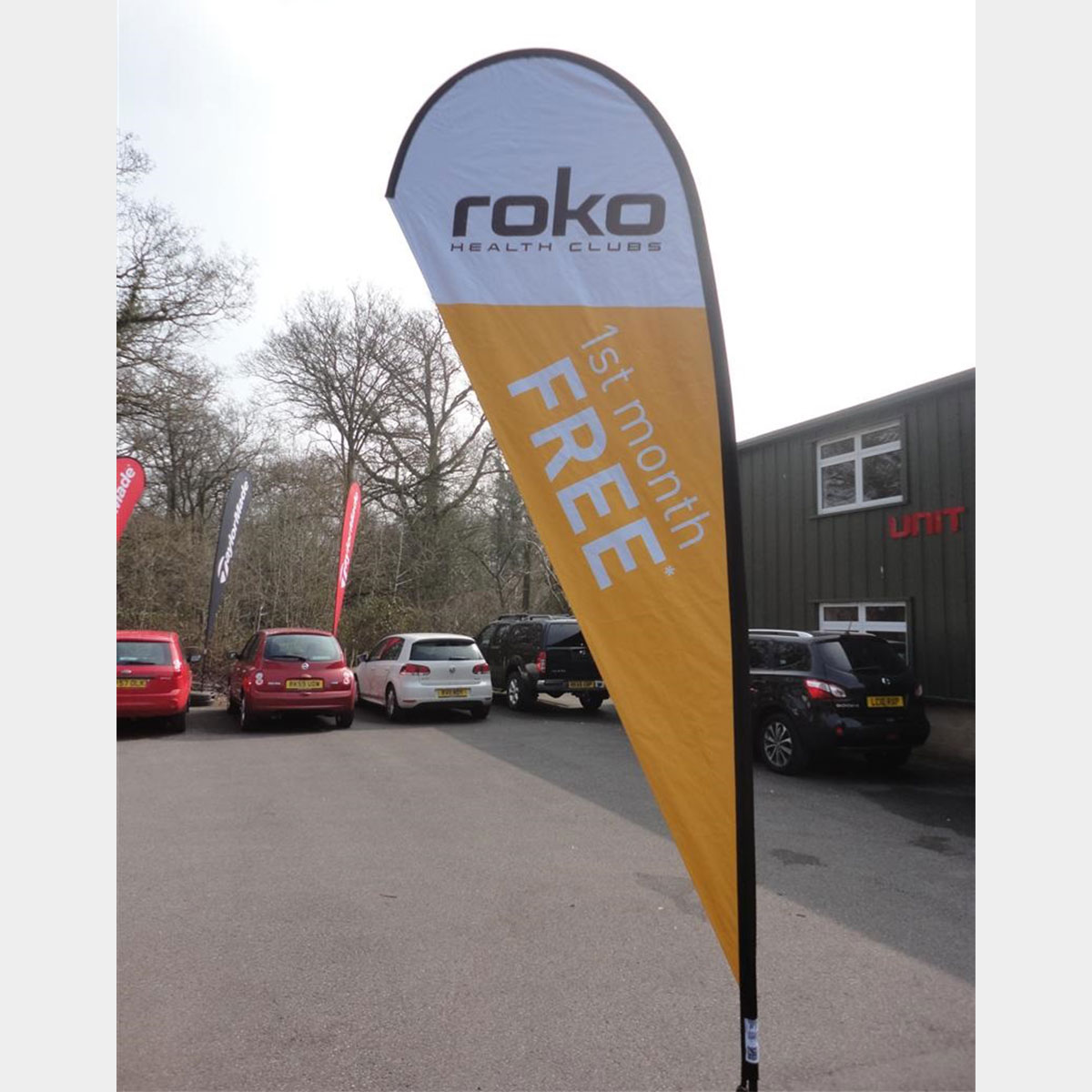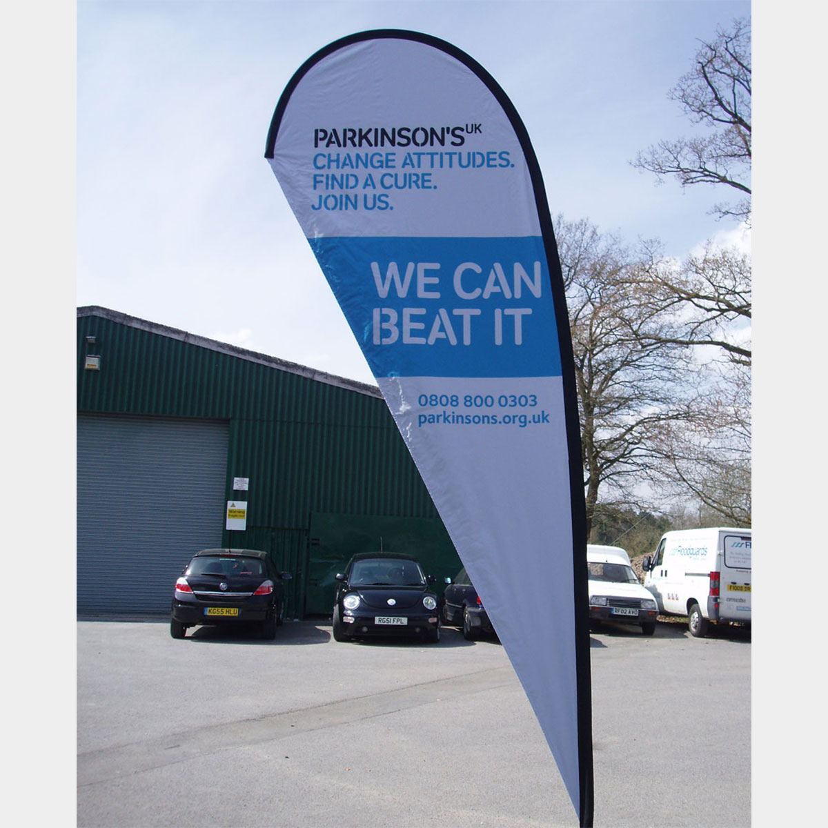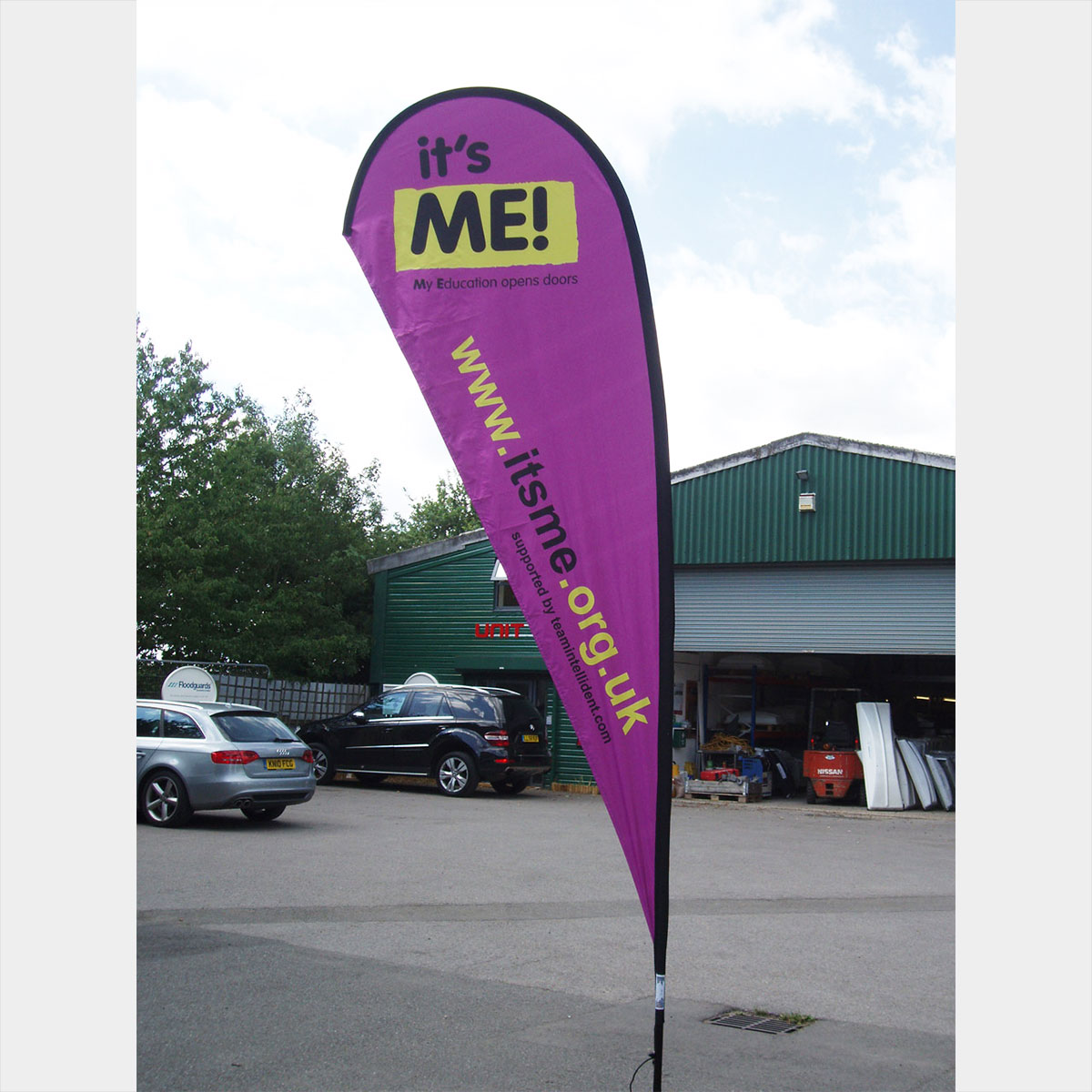 Teardrop Banners are available with a range of bases and fittings including ground spikes, cross bases with water bags, car wheel mounts and wall mounts.