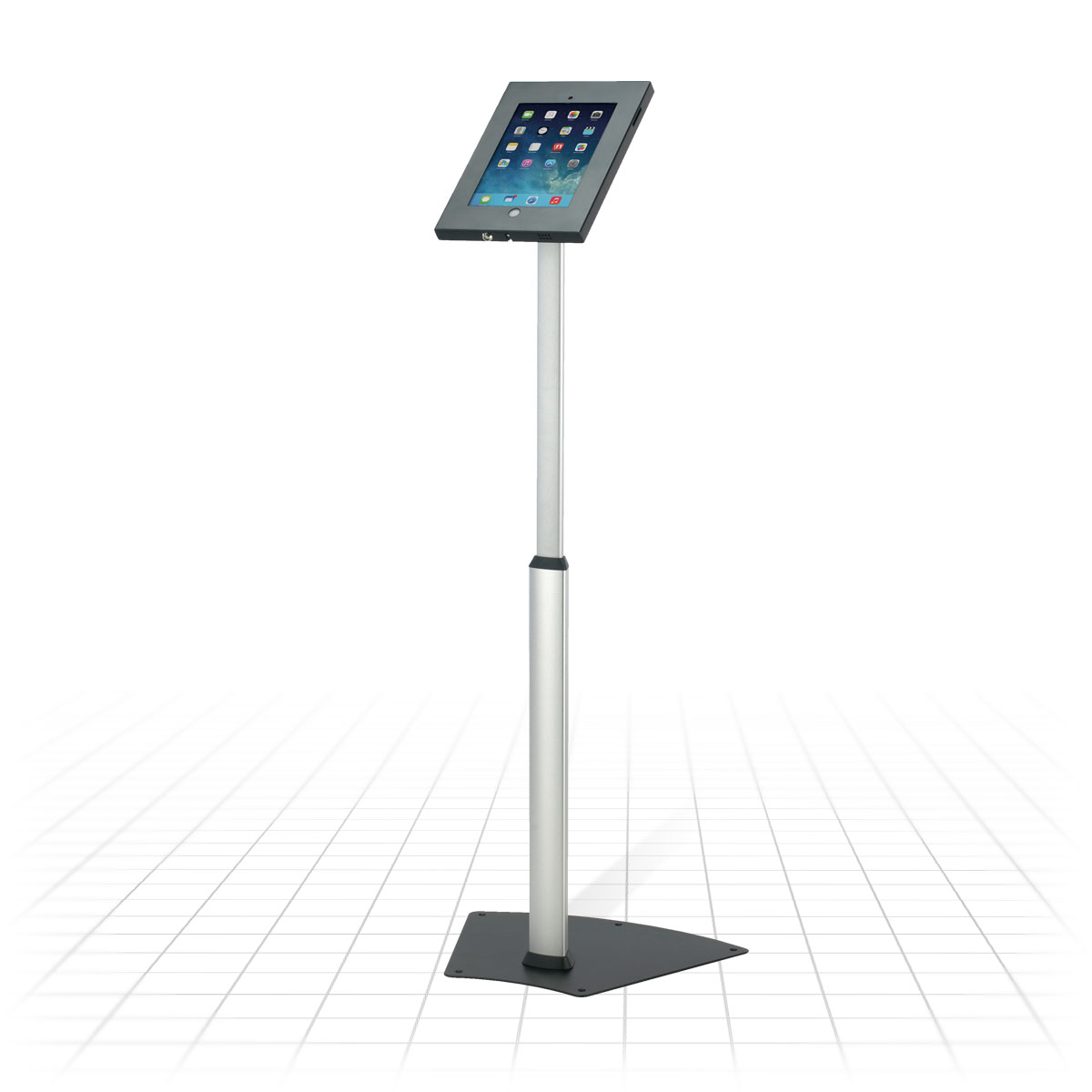 For added stability, the iPad Telescopic Stand can be securely mounted to the floor using the supplied fixings. This feature guarantees that the stand remains firm and stationary, even in bustling environments. It is compatible with most tablets sized between 220 x 160mm and 245 x 9mm, though it is not suitable for the 2019 10.2” iPads or 10.5” and 12.9” iPad Pro models. With a 2-year warranty, this stand is designed for long-lasting reliability and performance.