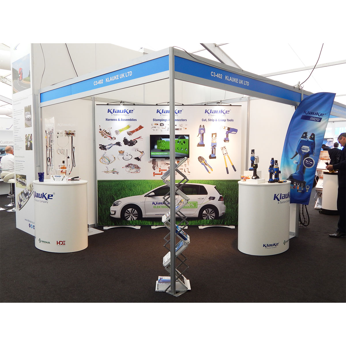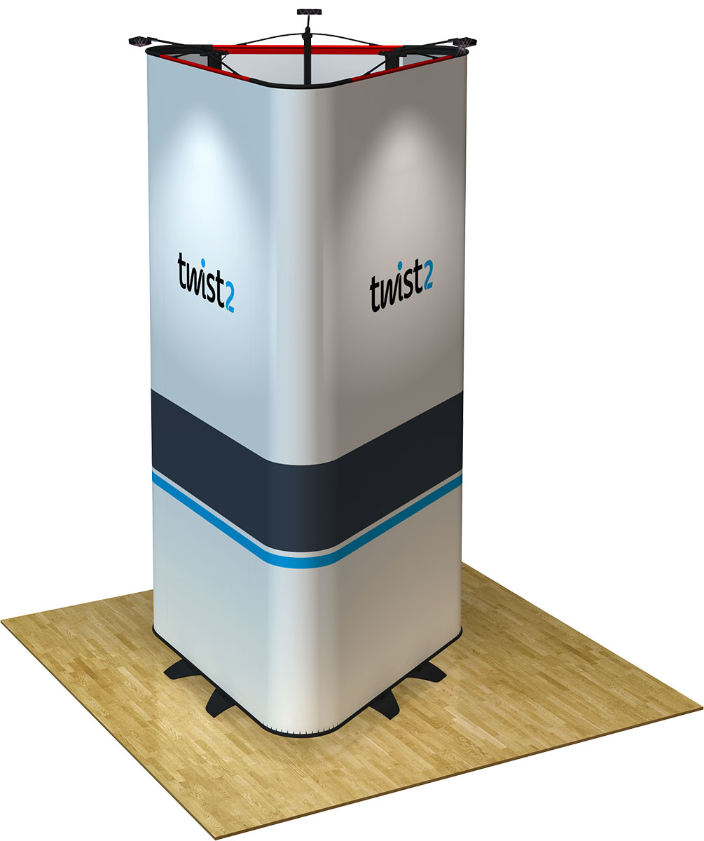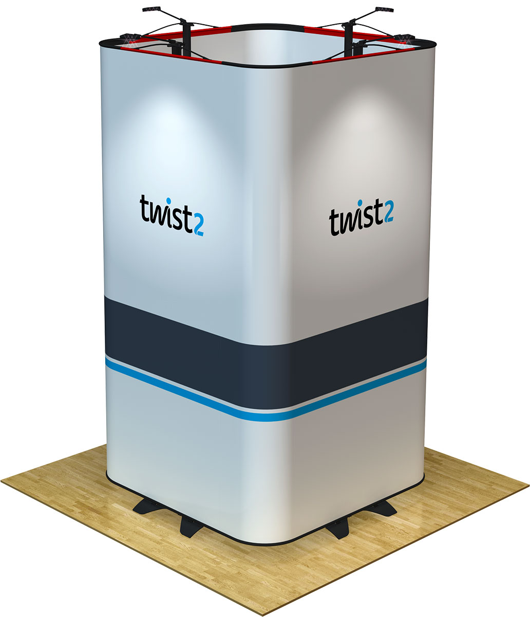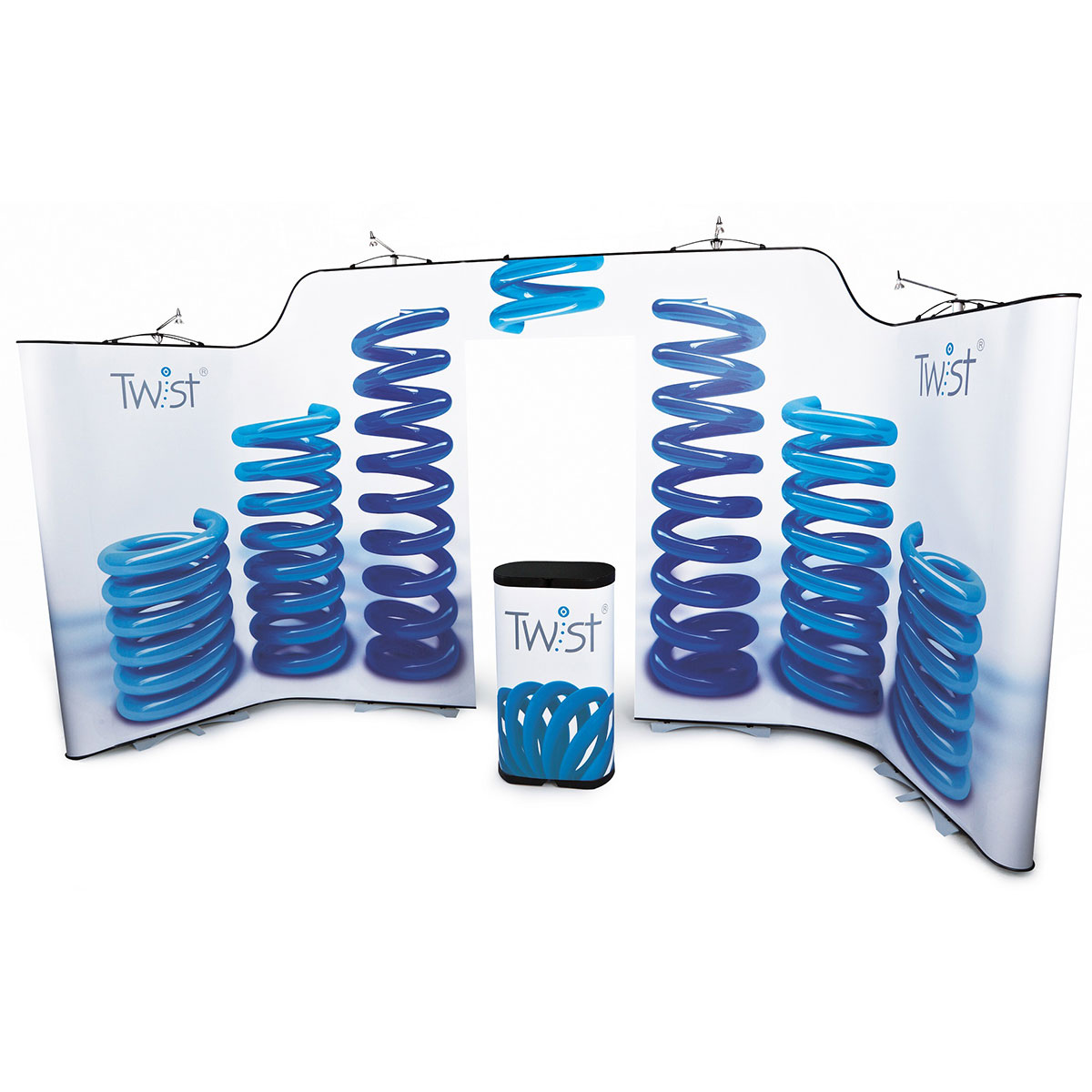 Twist Banner Stands are a new unique display stand which bridge the gap between banner stands and Pop Up exhibition display stands. Twist offers a flexibility that traditional Pop Up stands aren’t able to offer. Twist banner display stands can be used as individual banner displays, and then be seamlessly joined together to create a large exhibition stand with a bespoke shape. Unique stands and structures can be created with a wide range of accessories including LCD screens, literature display and product display.