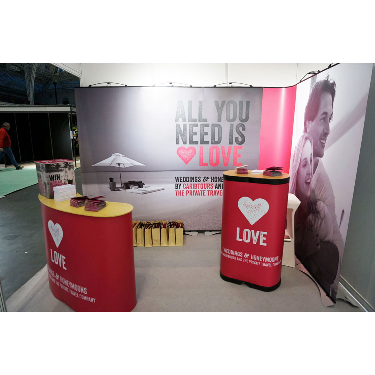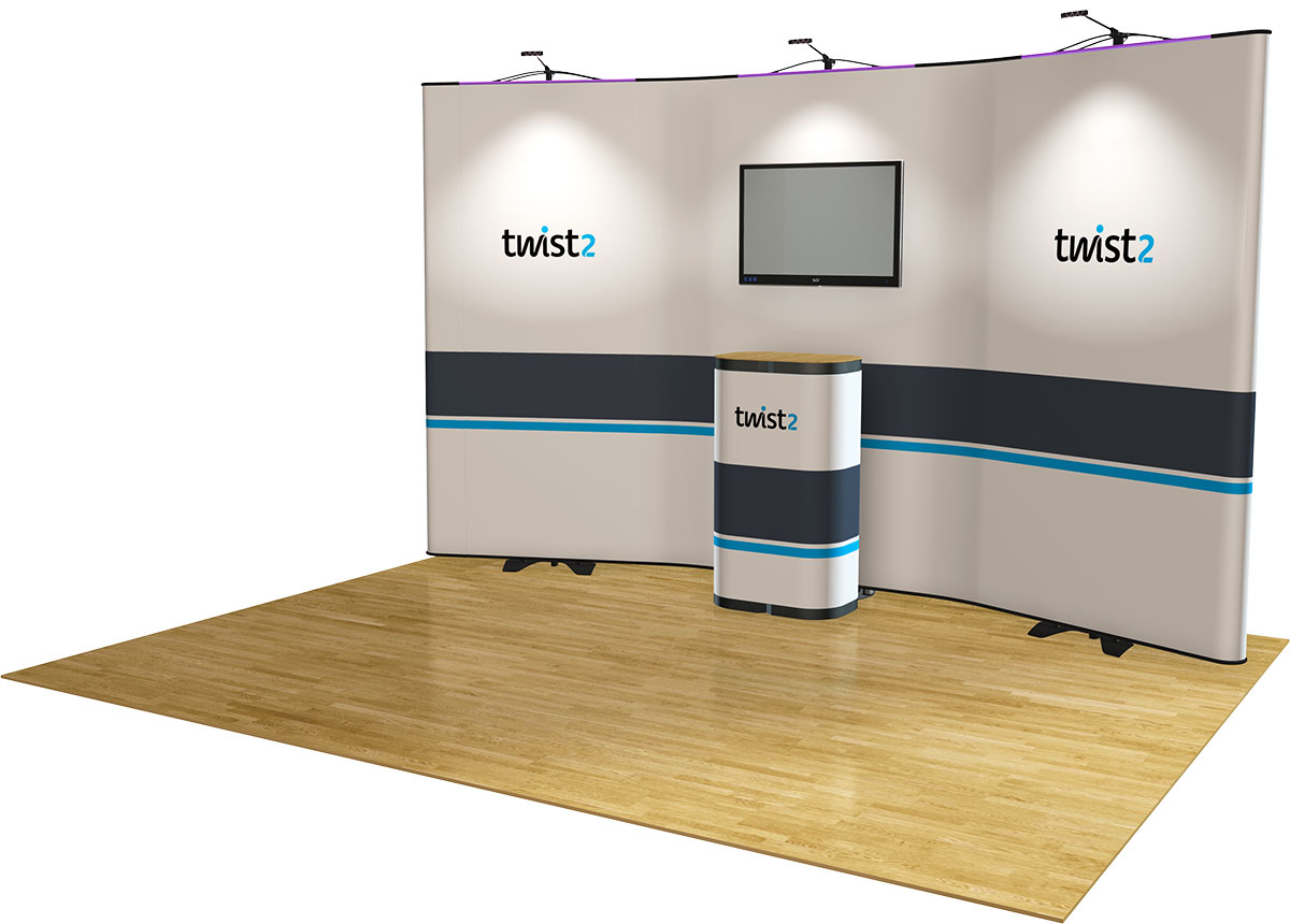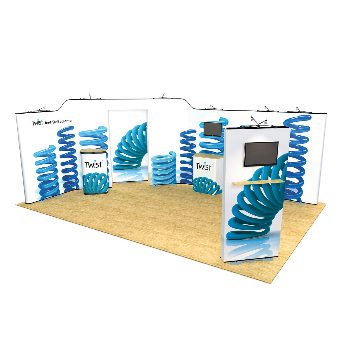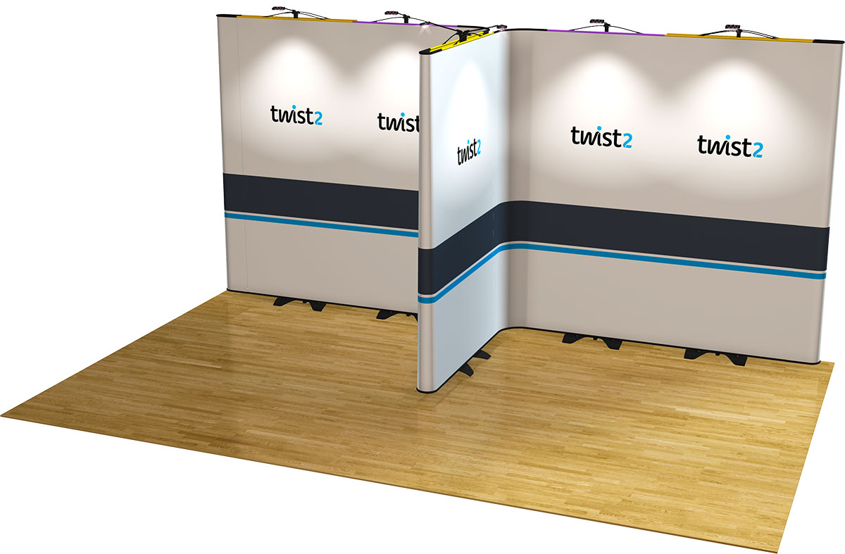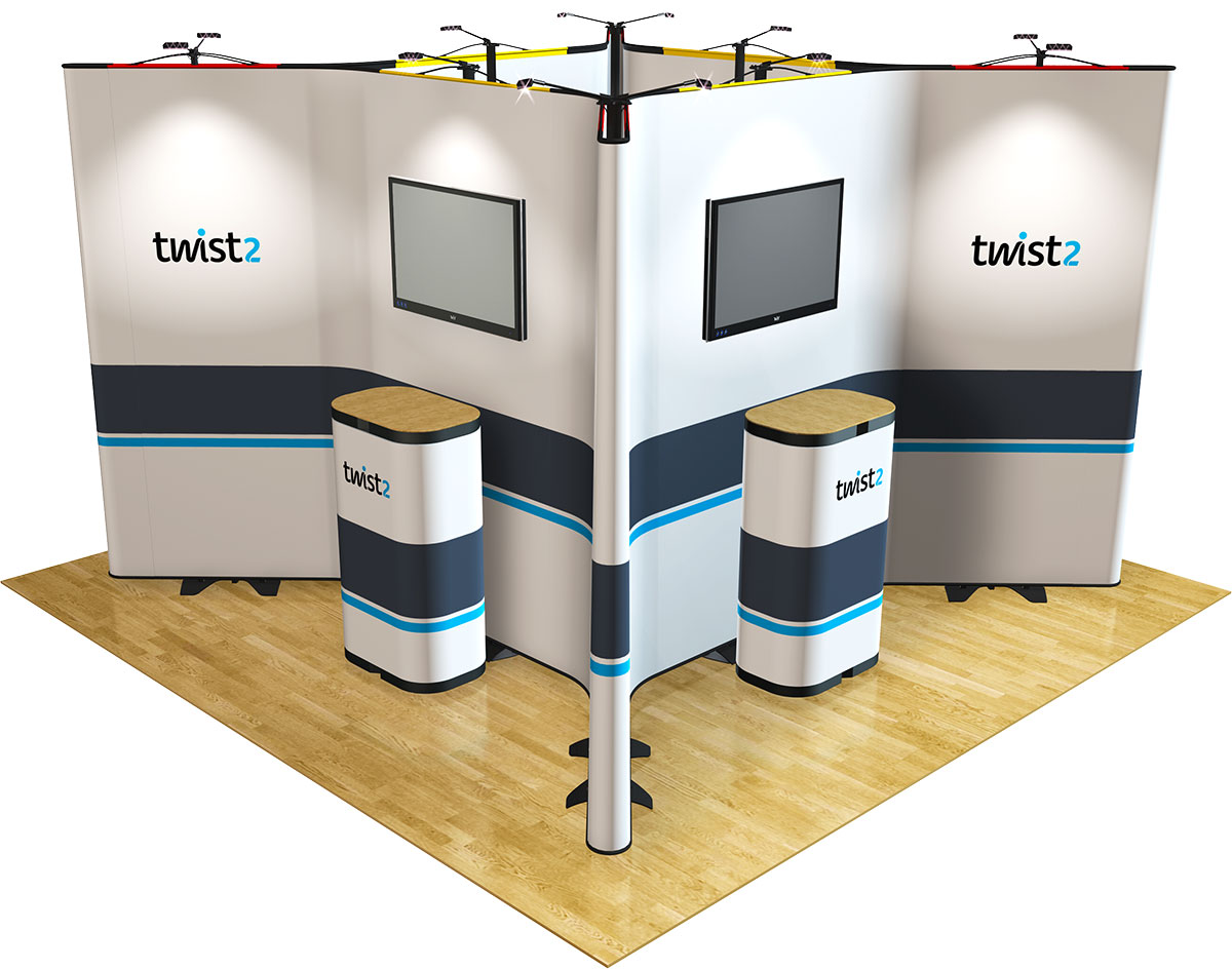 The Easi-Link kit is used to link Twist Display Stands to create a flat wall or backdrop. Or create the ultimate bespoke exhibition stands by utilising both Flexi-Link panels and Easi-Link kits. We can help you to visualise a bespoke Twist configuration with our free In House design service. Simply give us the stand spaces you want to use your Twist stands in, and we will put together 3D drawings showing the best configuration.