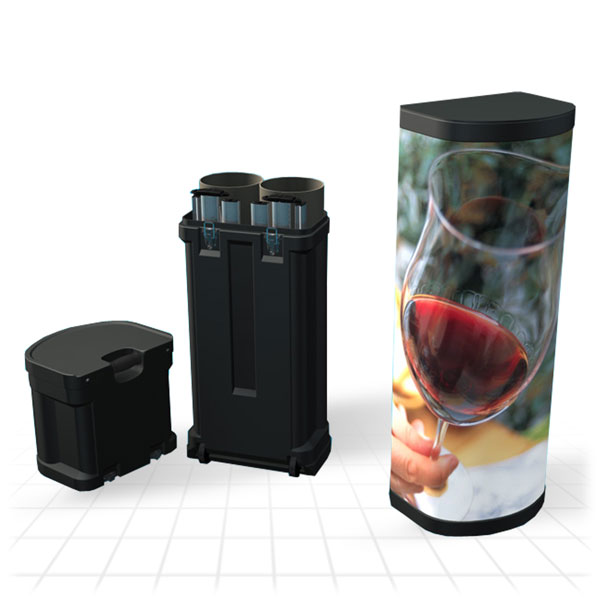 Twist stands can be supplied in a canvas bag for hardware, and a carry drum for the graphic panels. Alternatively, two Twist units and a Flexi-Link panel can be transported in a wheeled case. This wheeled case can be transformed into a branded podium or lectern.