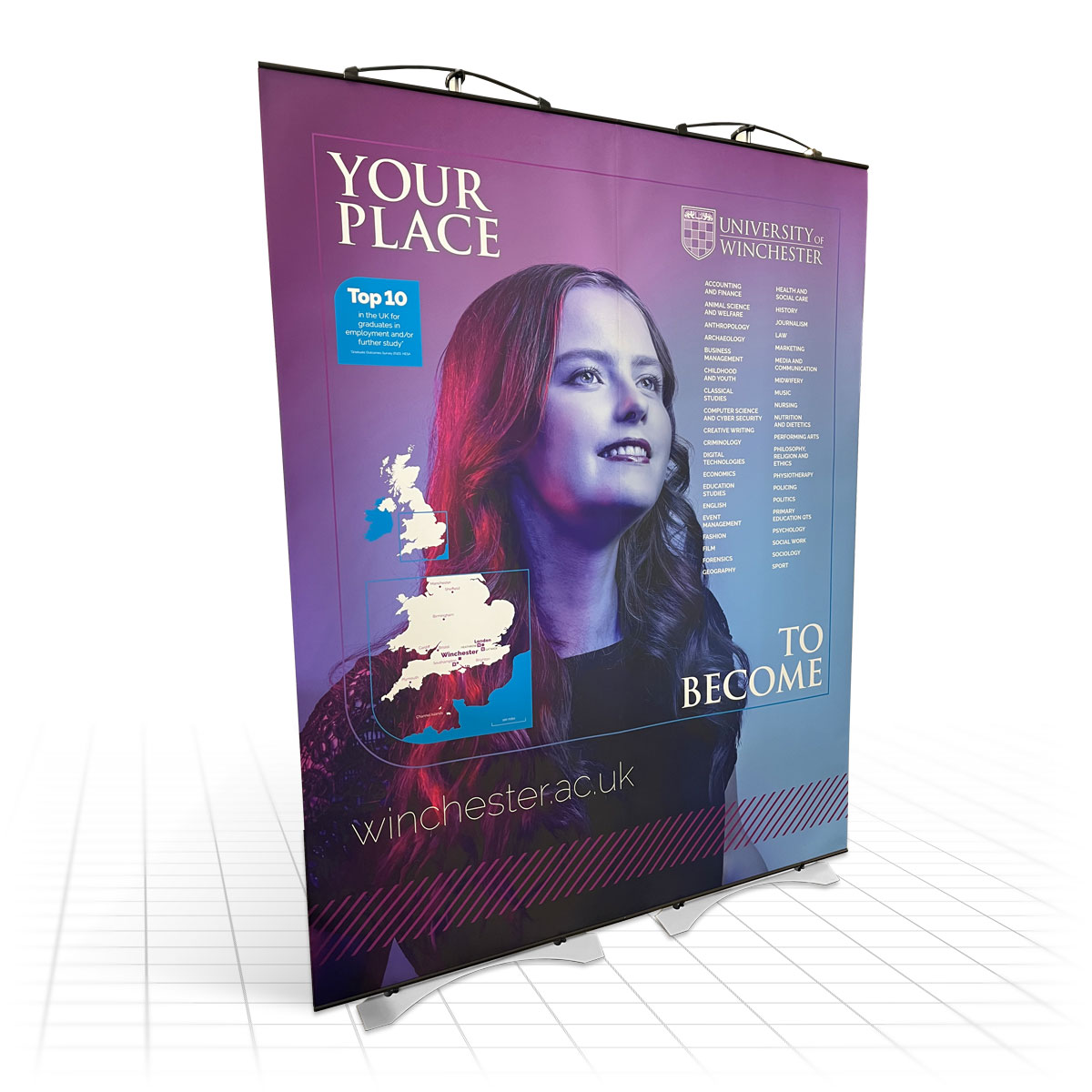 • Flexible alternative to Banner Stands and Pop Up Stands
