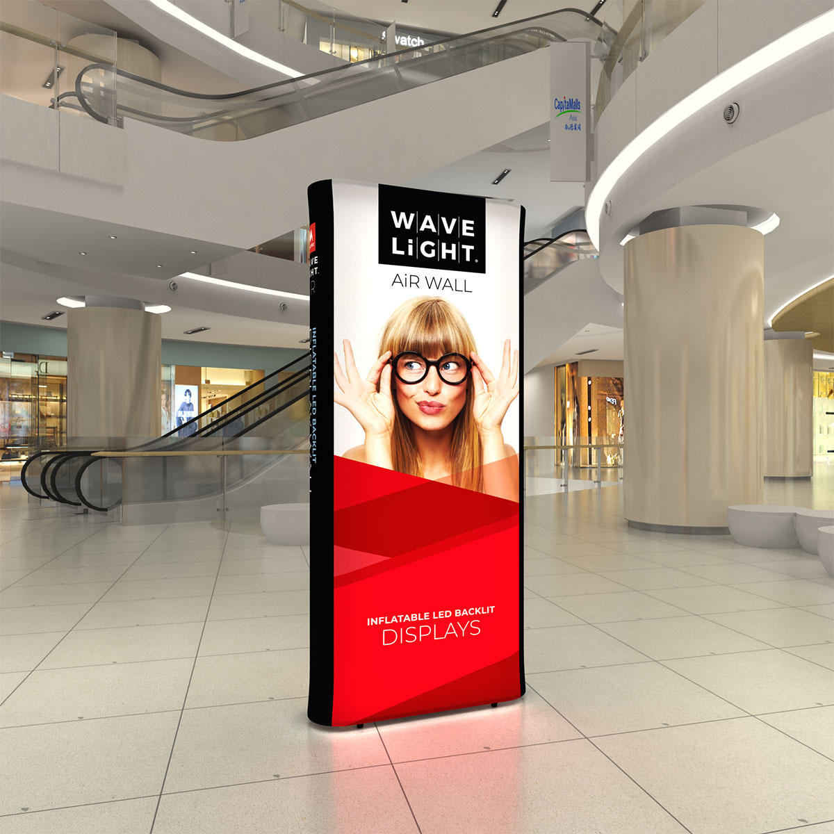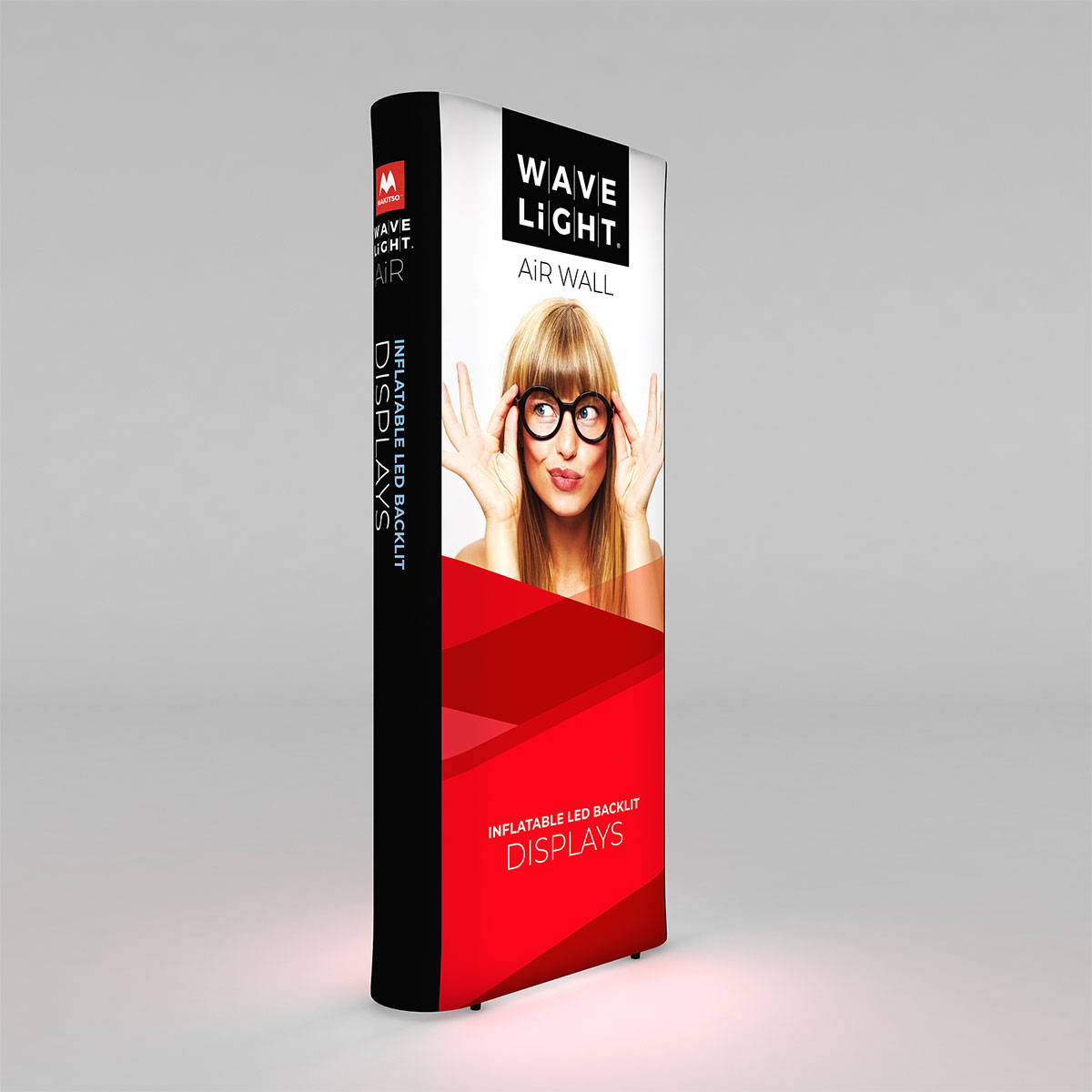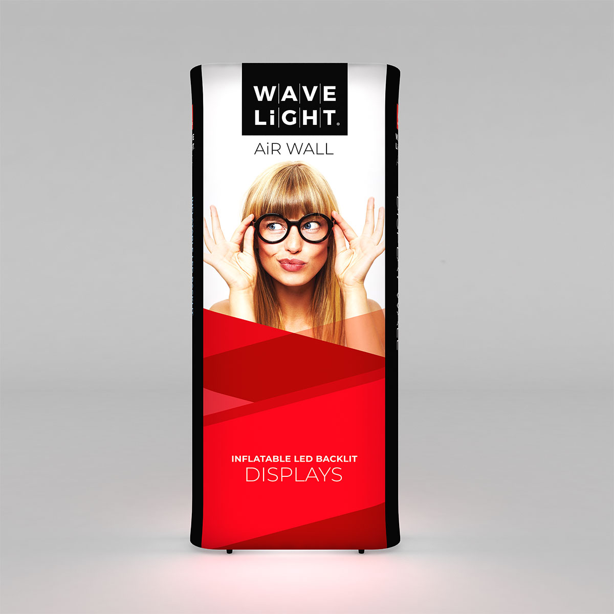 An extraordinary double-sided inflatable display that elevates your branding to new heights. This backlit wall showcases a dazzling array of bright LED lights, casting a luminous glow upon the fabric graphic and creating a captivating visual impact that draws attention and enhances your brand visibility. With its inflatable design and vibrant LED lights, the WaveLight® Air Wall transforms into an eye-catching focal point, making it the perfect choice for trade shows, events, retail environments, and other promotional spaces where leaving a lasting impression is paramount.
