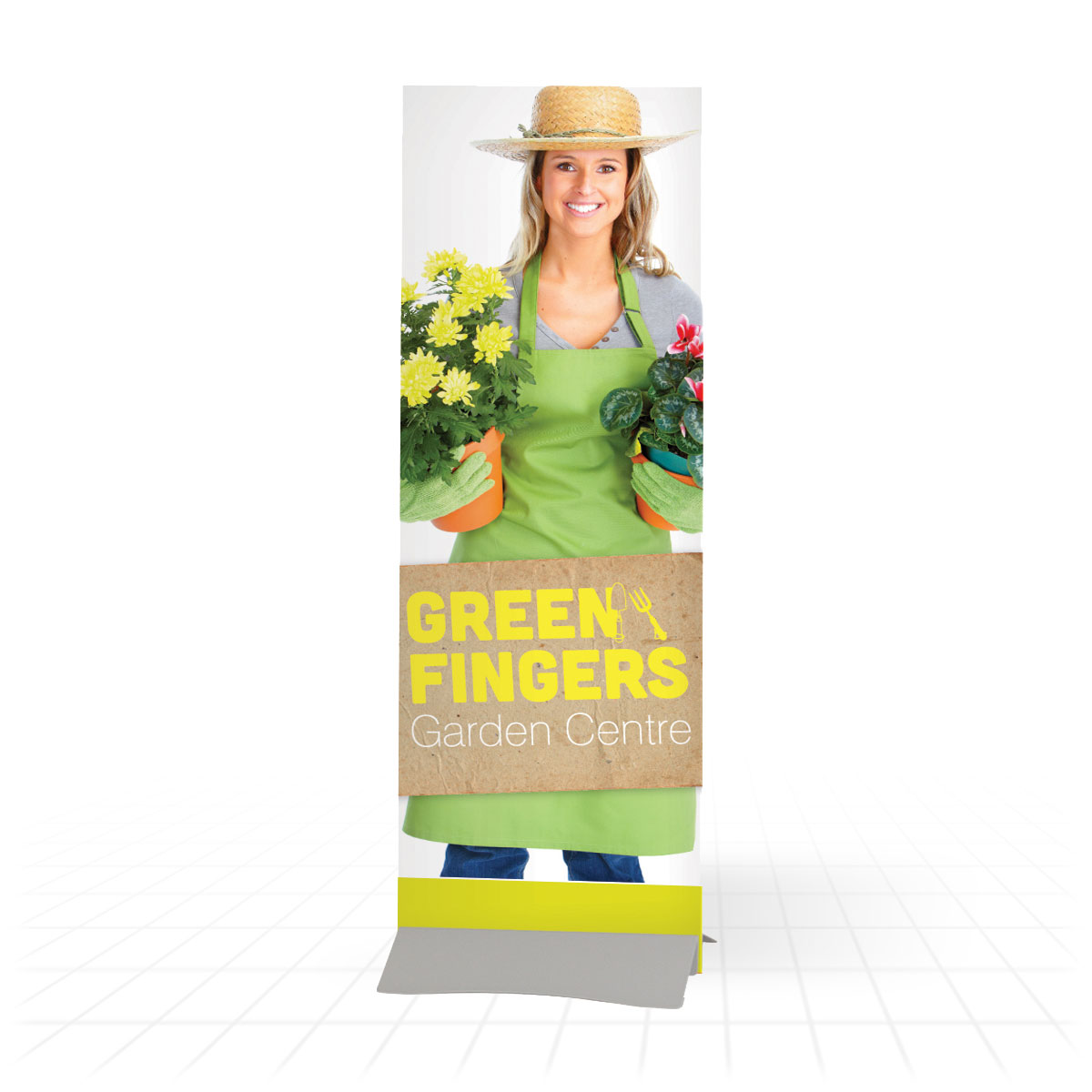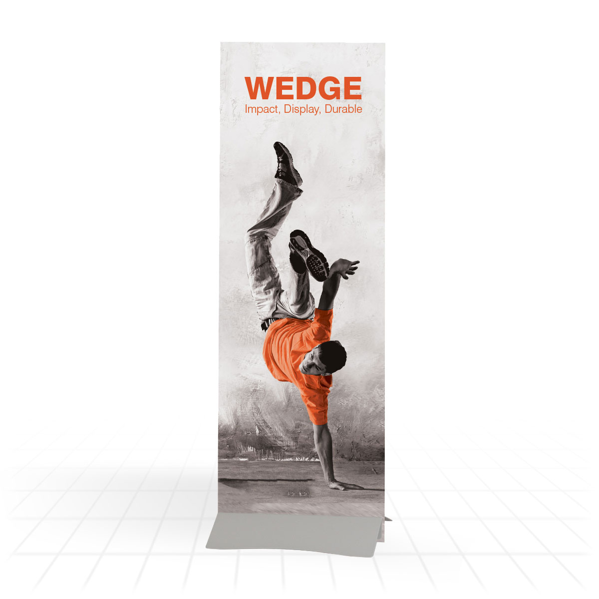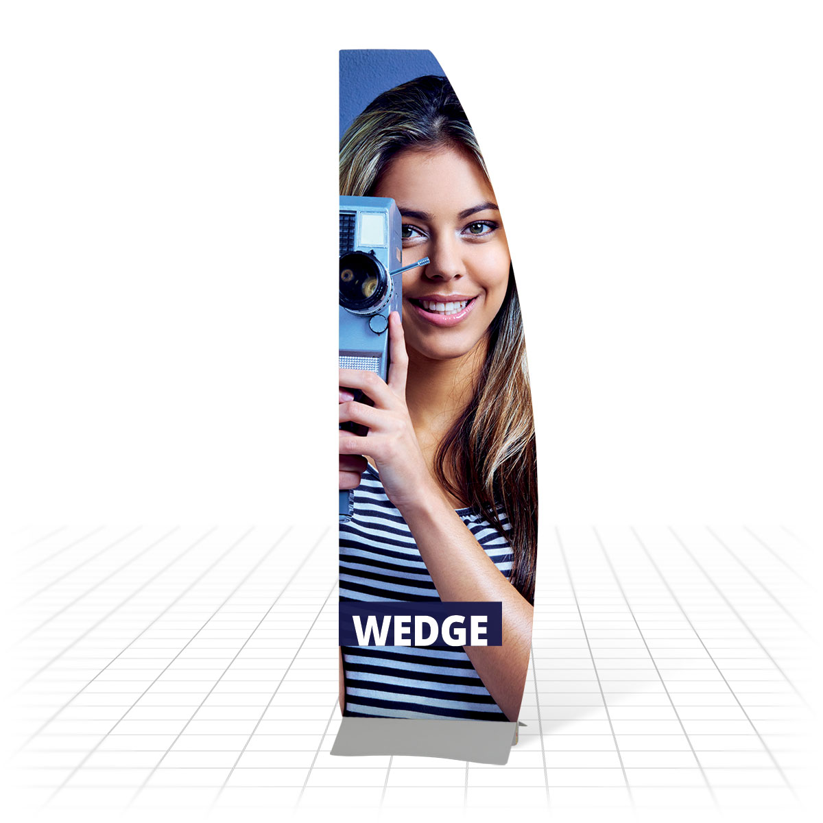 Wedge bases are available in 4 different widths; 300mm, 600mm, 800mm and 1000mm. Although the graphic panel can be wider than the base, if you require a specific width display. We recommend a maximum height of 1500mm.