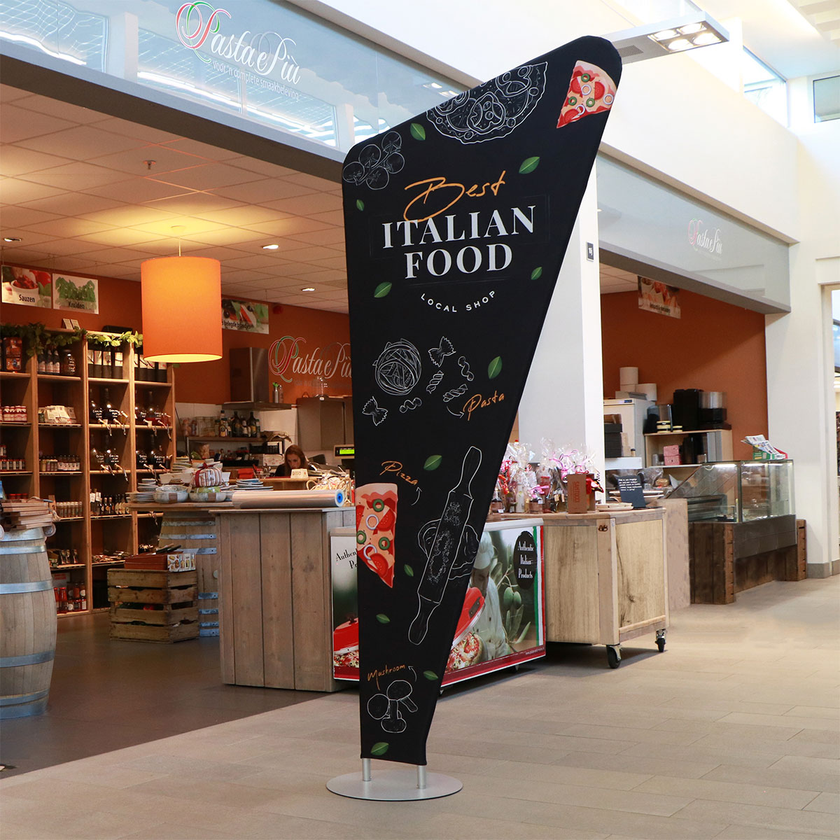 In the realm of indoor displays commanding attention, the Zipper-Banner Triangle stands as the epitome of excellence. Its remarkable adaptability makes it the optimal choice across a broad spectrum of settings. Convert shopping malls into immersive brand odysseys, metamorphose exhibitions into visual storytelling spectacles, and infuse schools and airports with dynamic spaces for information dissemination. Enhanced by its sleek triangular contour and an impressive height of 2.6 meters, the Zipper-Banner Triangle optimizes visibility from every vantage point. This serves as the canvas for your creativity, empowering you to convey your brand’s message through impactful visuals that etch a lasting impression. Immerse yourself in the versatility that empowers the transformation of any indoor area into a captivating realm of expression.
