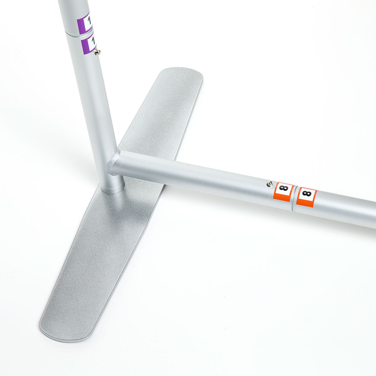 - Lightweight aluminium frame, 30mm diameter, free-standing