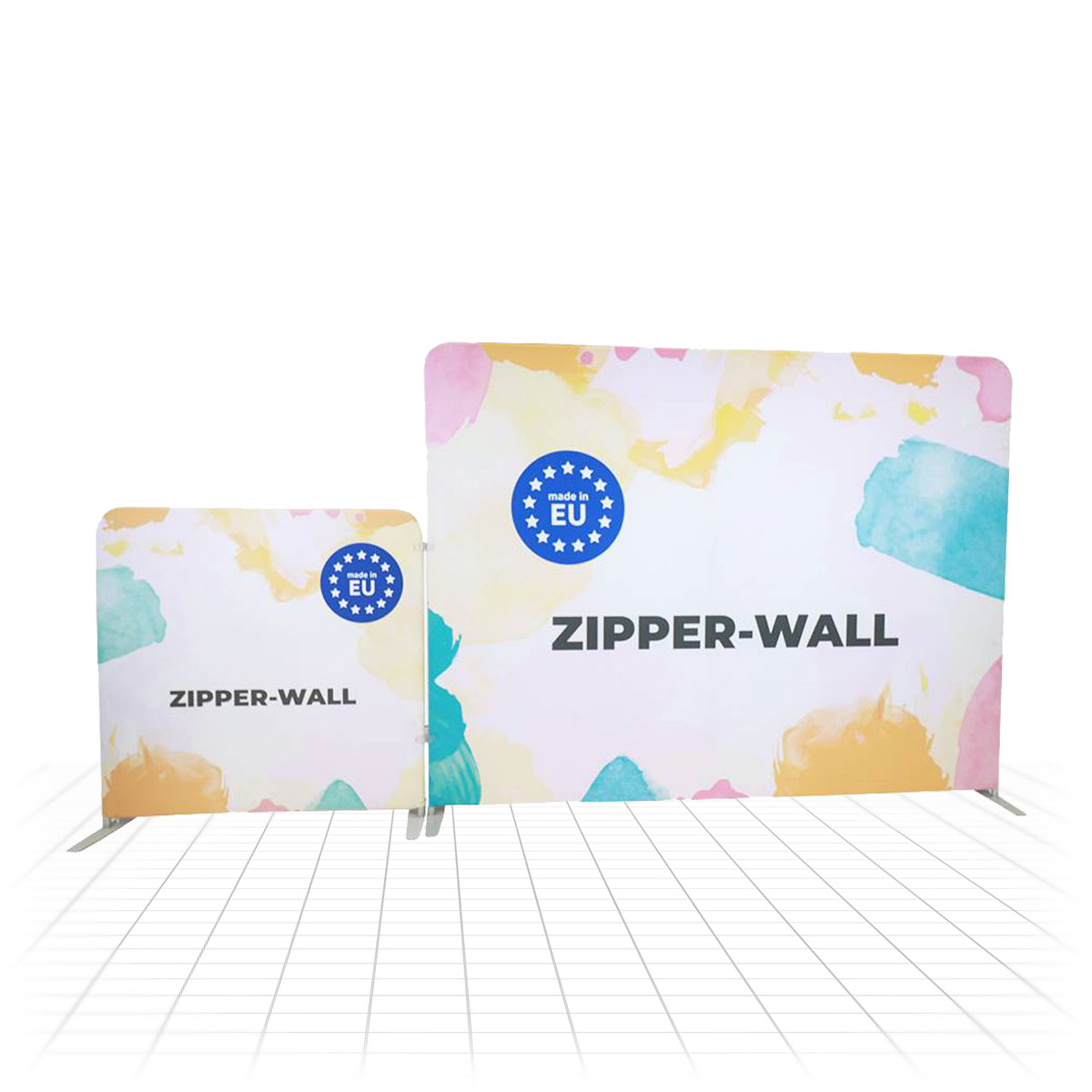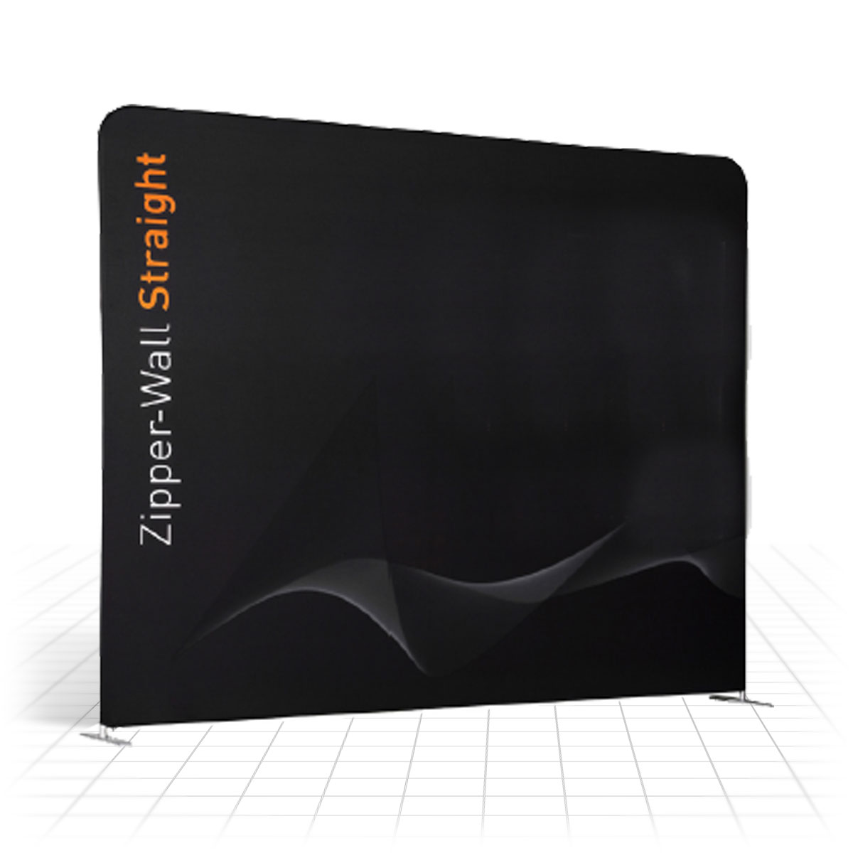 Zipper Fabric Straight Walls are a popular option in fabric stands, used in a variety of situations both for quick portable and more long term display solutions. A strong design and solid construction the seamless fabric graphic fits on like a glove. Used as office and exhibition space dividers or in retail for more permanent displays.